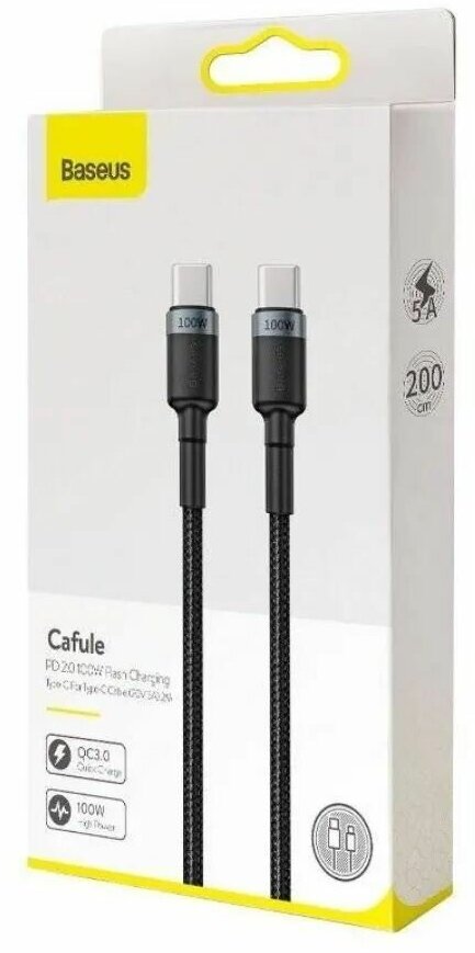 Кабель для зарядки и передачи данных BASEUS Cafule PD2.0 100W, Type-C to Type-C, 20V/5A, 2 м, Черный+Серый