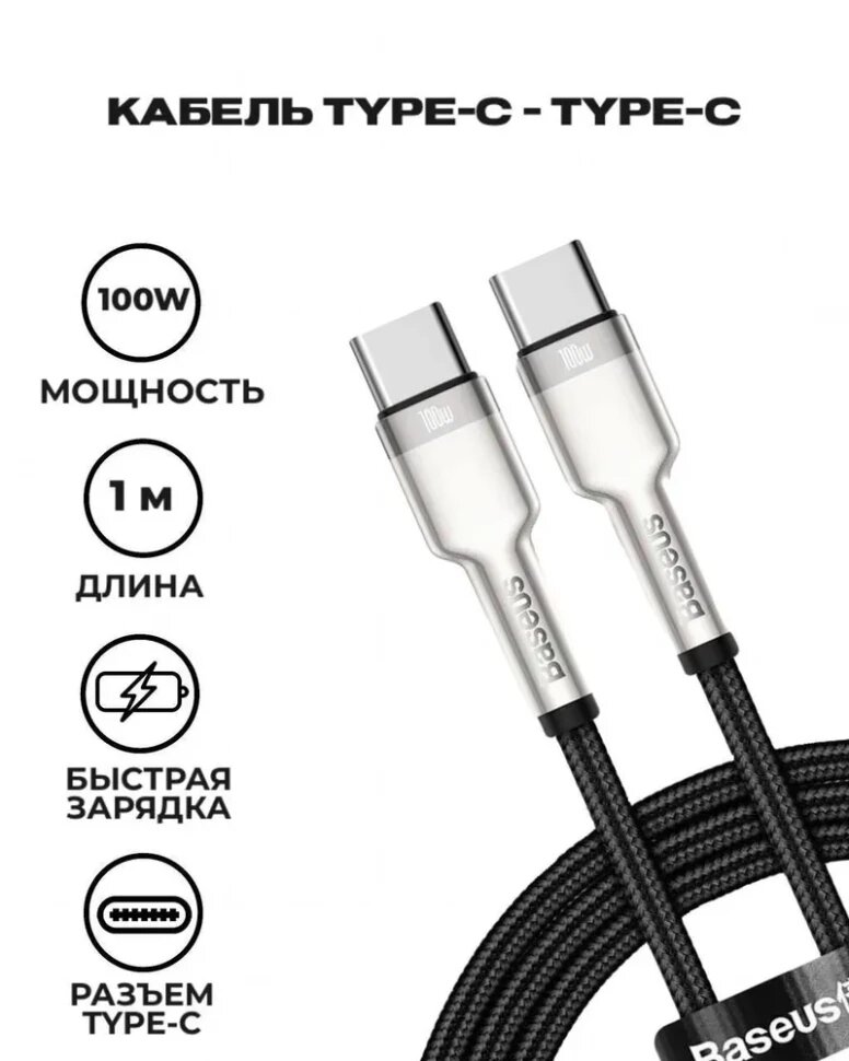 СохранитьКабель-зарядка Type-C на Type-C Baseus Cafule Metal 100W 1м CATJK-C01 черный интересное: