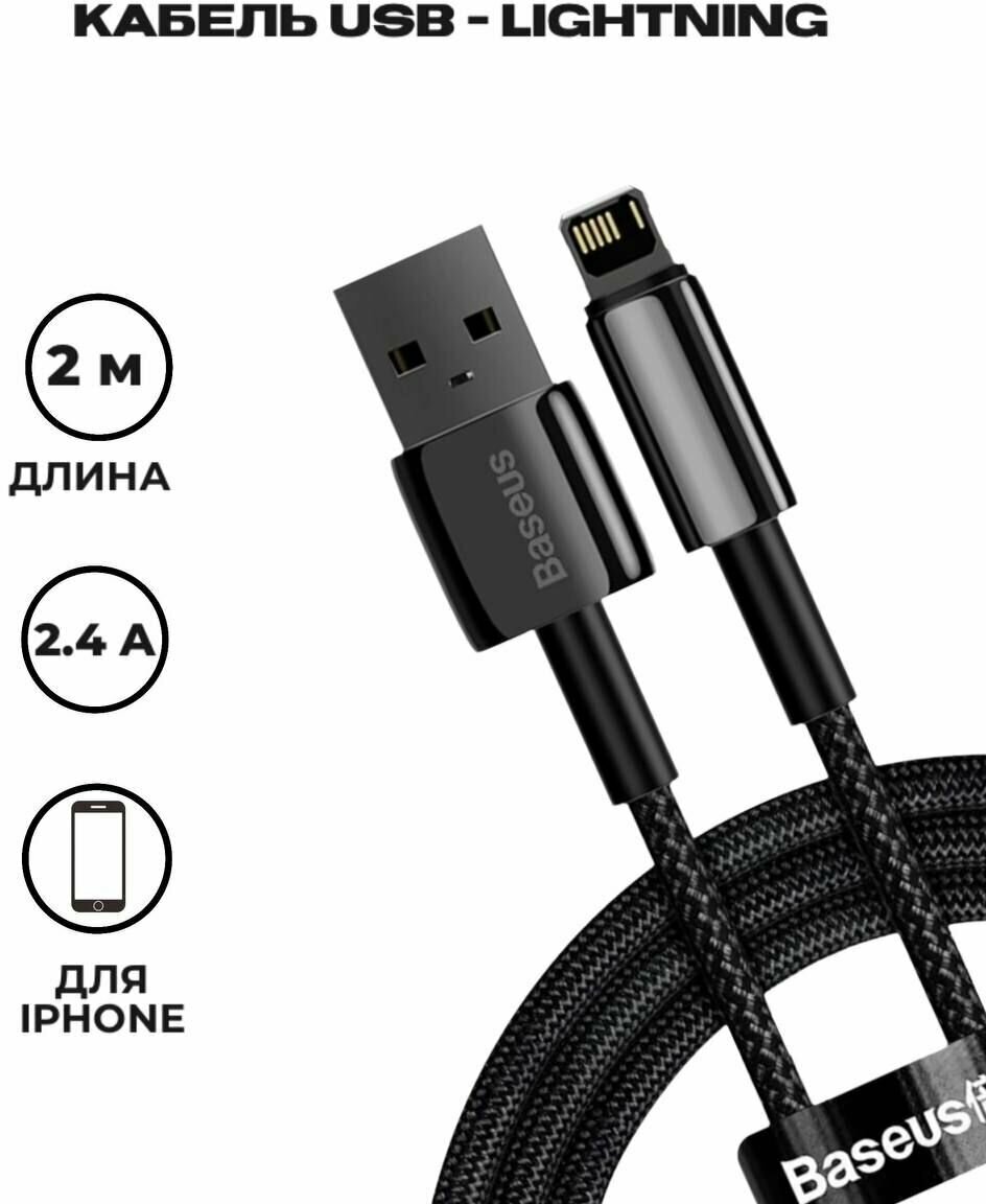 Кабель USB BASEUS Tungsten Gold Fast Charging, USB - Lightning, 2.4А, 2 м, черный