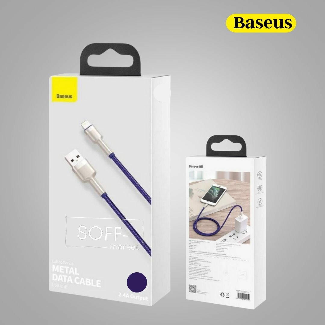 Кабель Xiaomi Baseus Cafule Series Metal Data Cable USB to iP 2.4A 1m Purple (CALJK-A05)