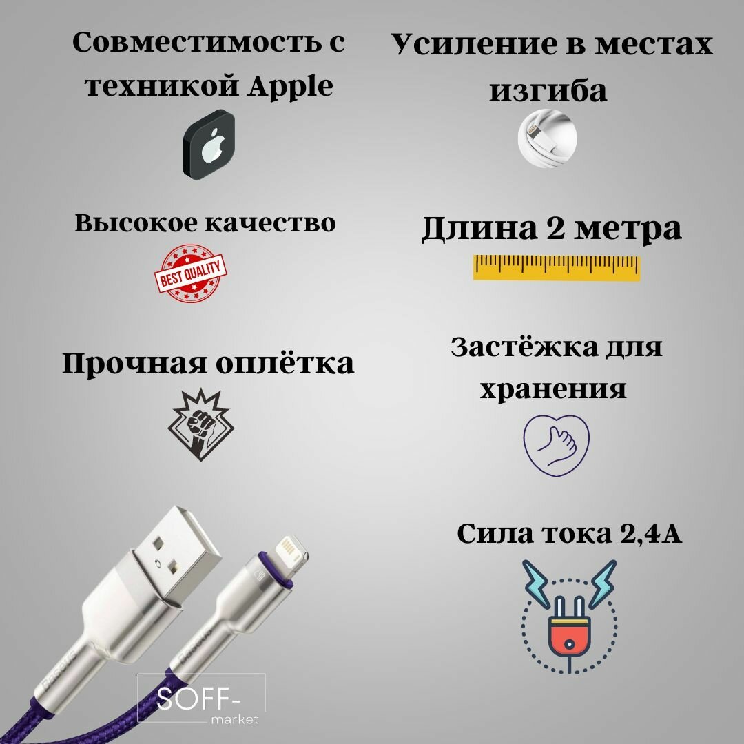 Кабель для айфона 2 метра Baseus USB - Lightning провод для быстрой зарядки телефона лайтинг шнур для IPhone