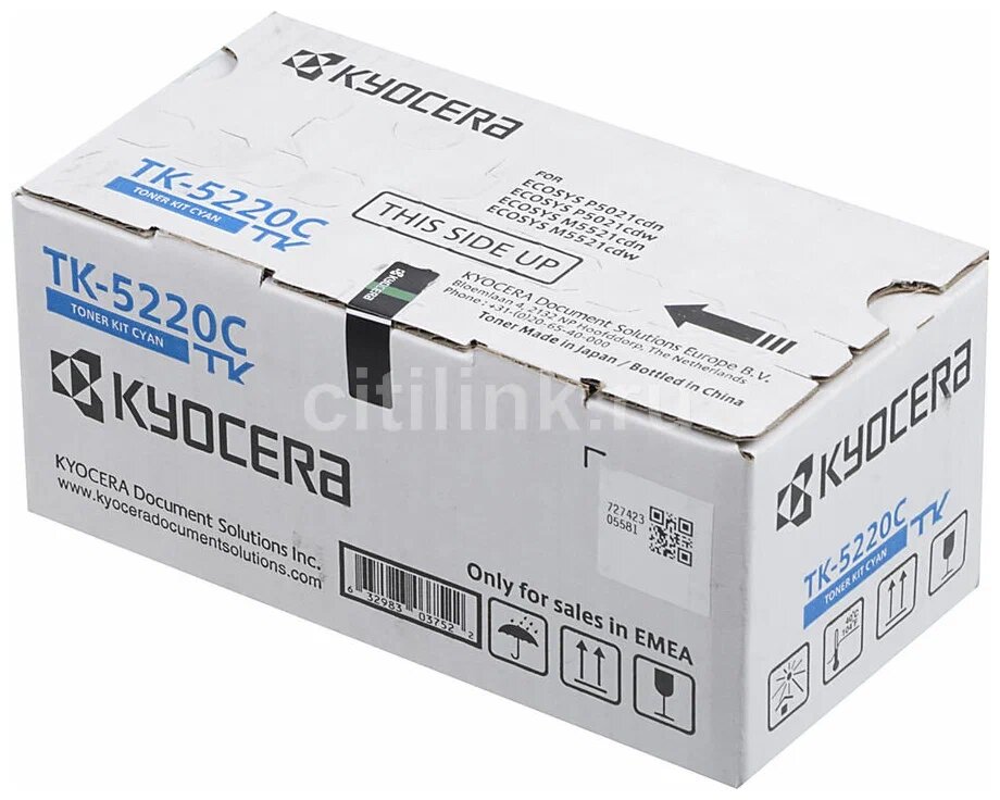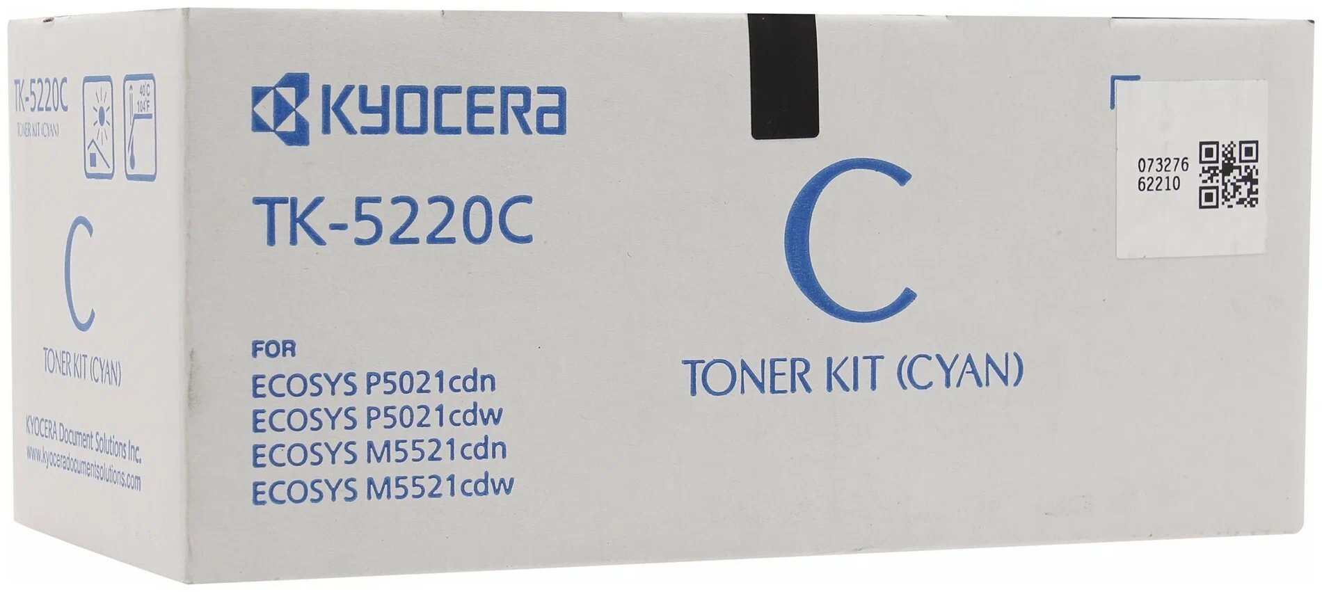 Картридж лазерный Kyocera TK-5220C, оригинальный, 1200 страниц для Kyocera P5021cdn/cdw, M5521cdn/cdw (1T02R9CNL1)