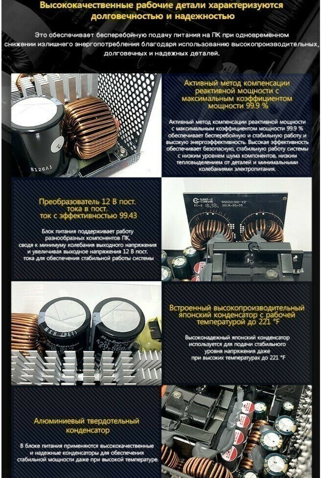 8 разъемов под кабели pci-e тихий гарантия 5 лет |