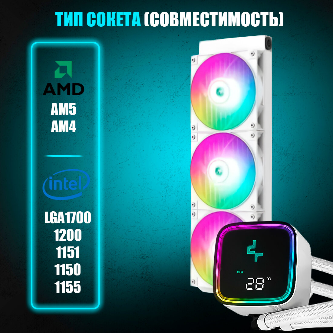 Система водяного охлаждения процессора Deepcool LS520, белый (R-LS520-WHAMNT-G-1) 1700 native