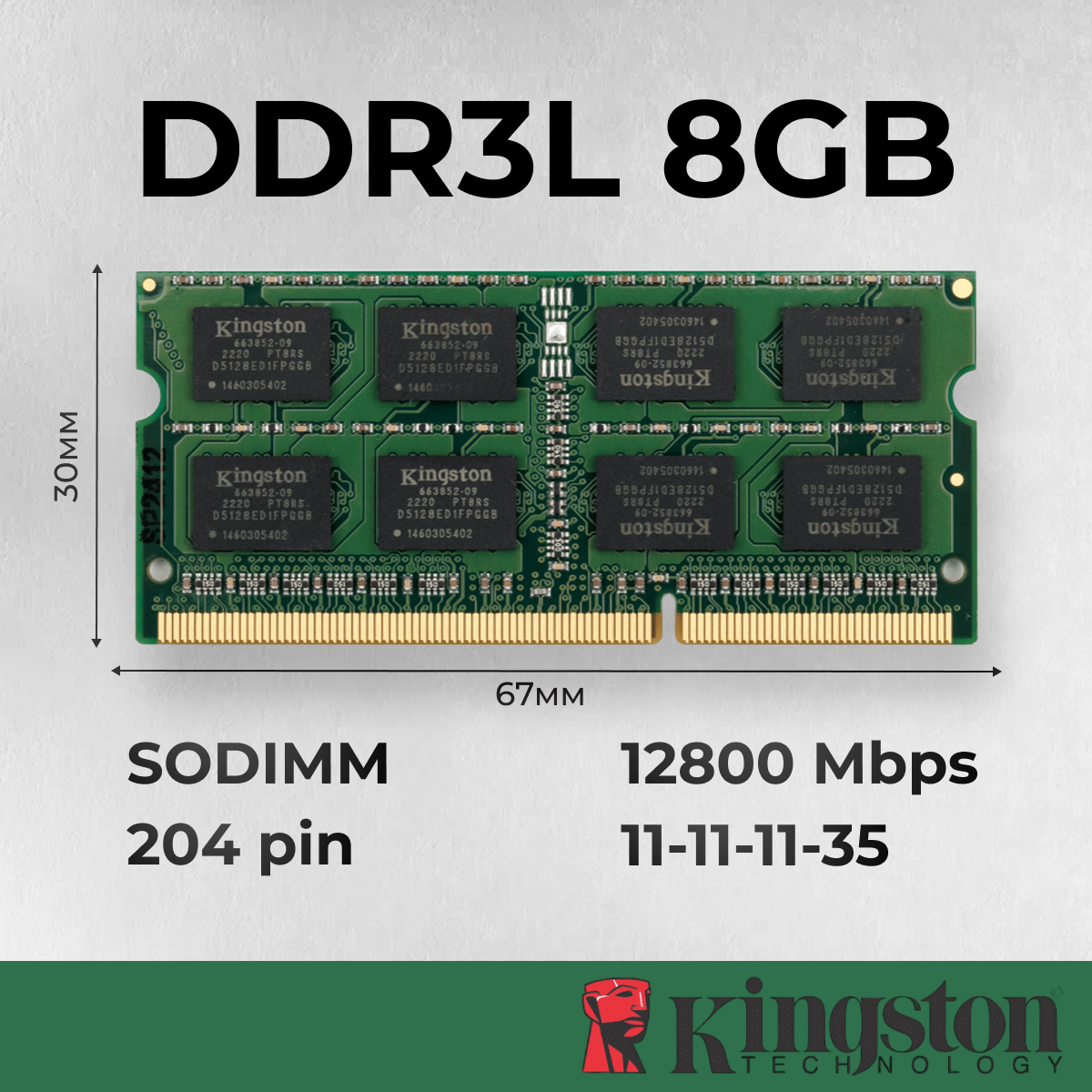 Kingston Модуль памяти NBook SO-DDR3L 8192Mb, 1600Mhz, Kingston #KVR16LS11/8 (RET)