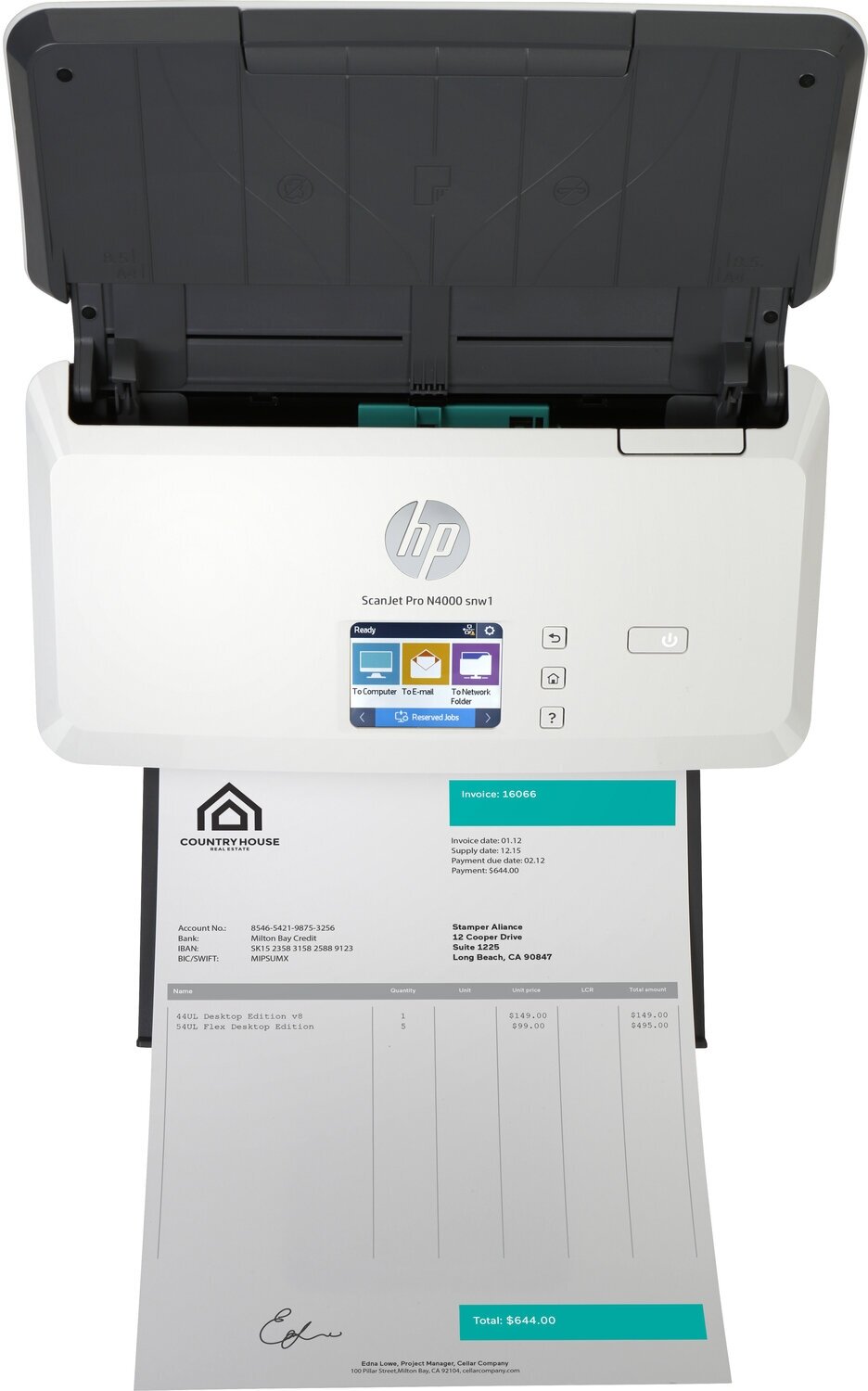 Сканер HP ScanJet Pro N4000 snw1 белый/черный [6fw08a]