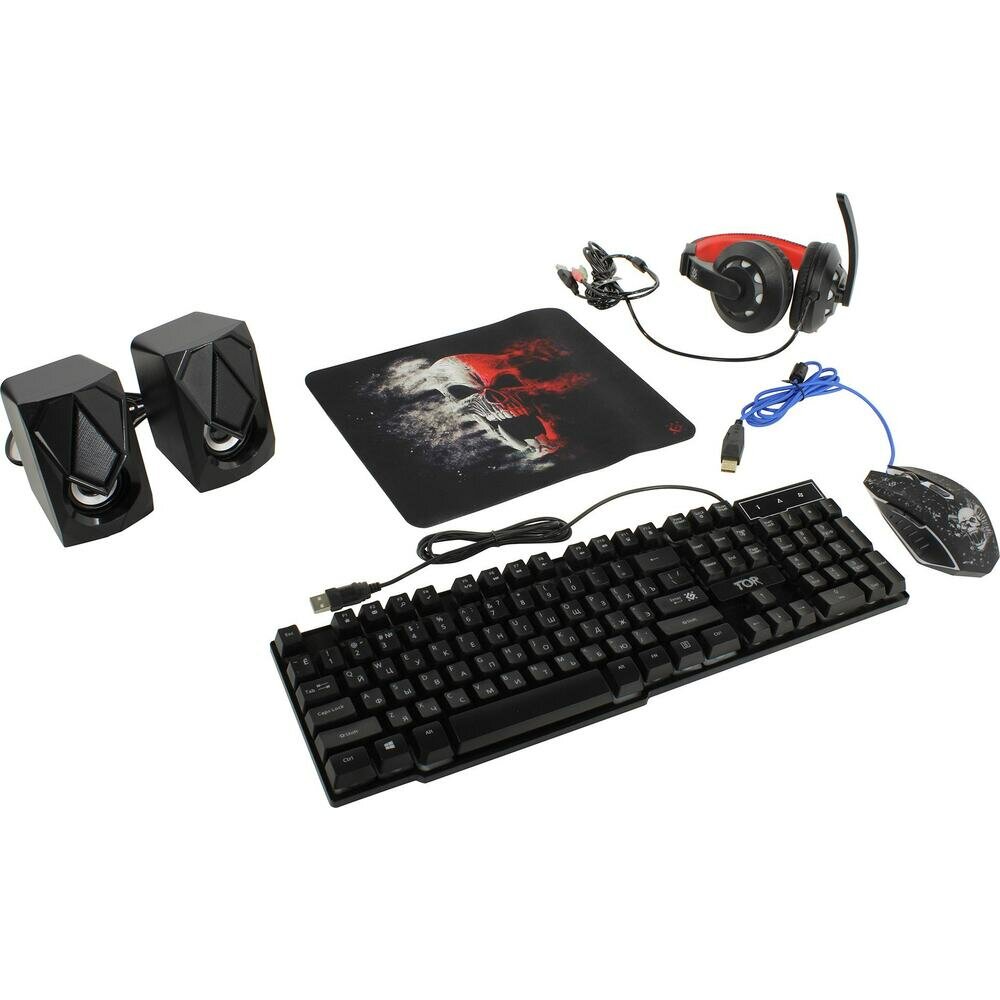 Клавиатура и мышь игровые Defender Tor MHP-127 проводной + комплект наушники с микрофоном + коврик +колонки - черные