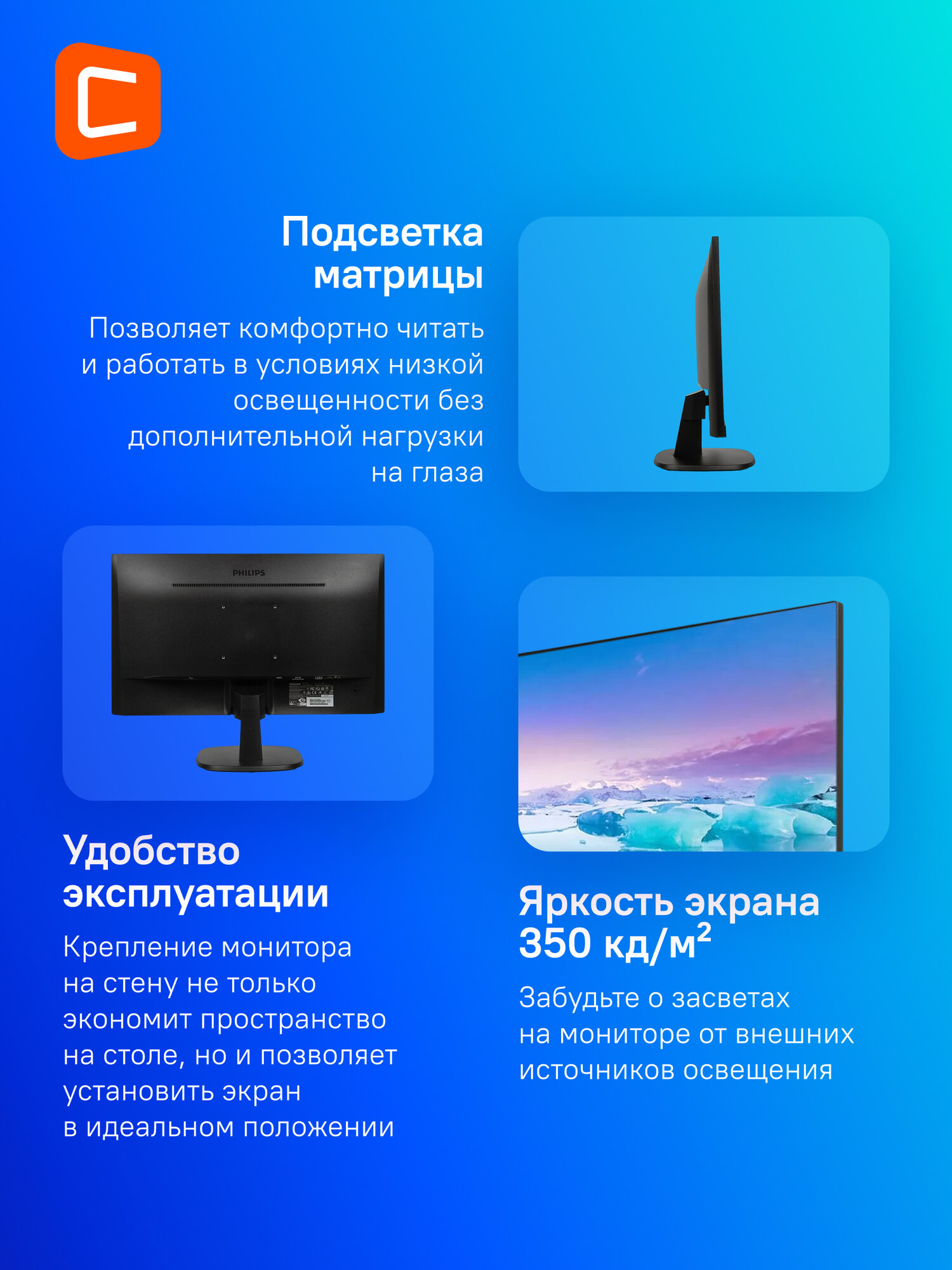 | Особенности | подсветка без мерцания (Flicker-Free) |
