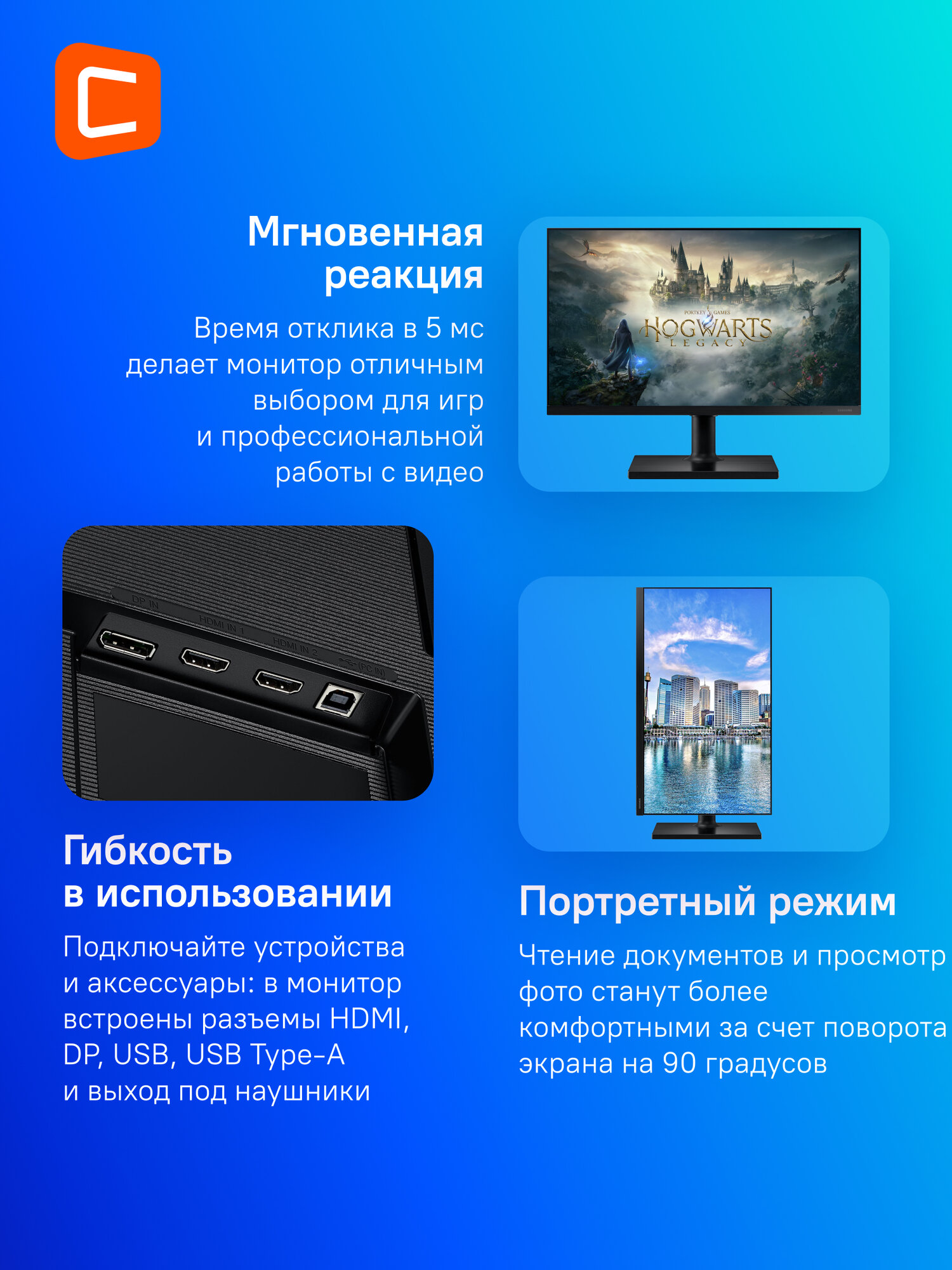 | Интерфейсы видео | вход HDMI x 2 / вход DisplayPort |