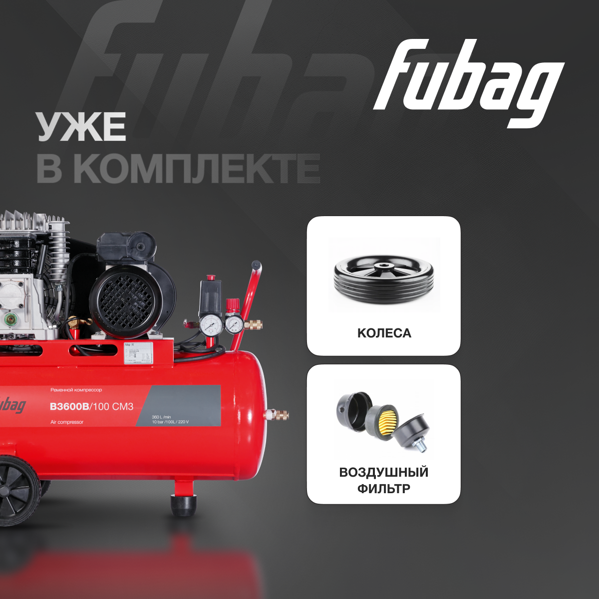 Купить Компрессор воздушный ременной FUBAG B3600B/100, 360 л/мин, ресивер 100 л, 10 бар, 220 В