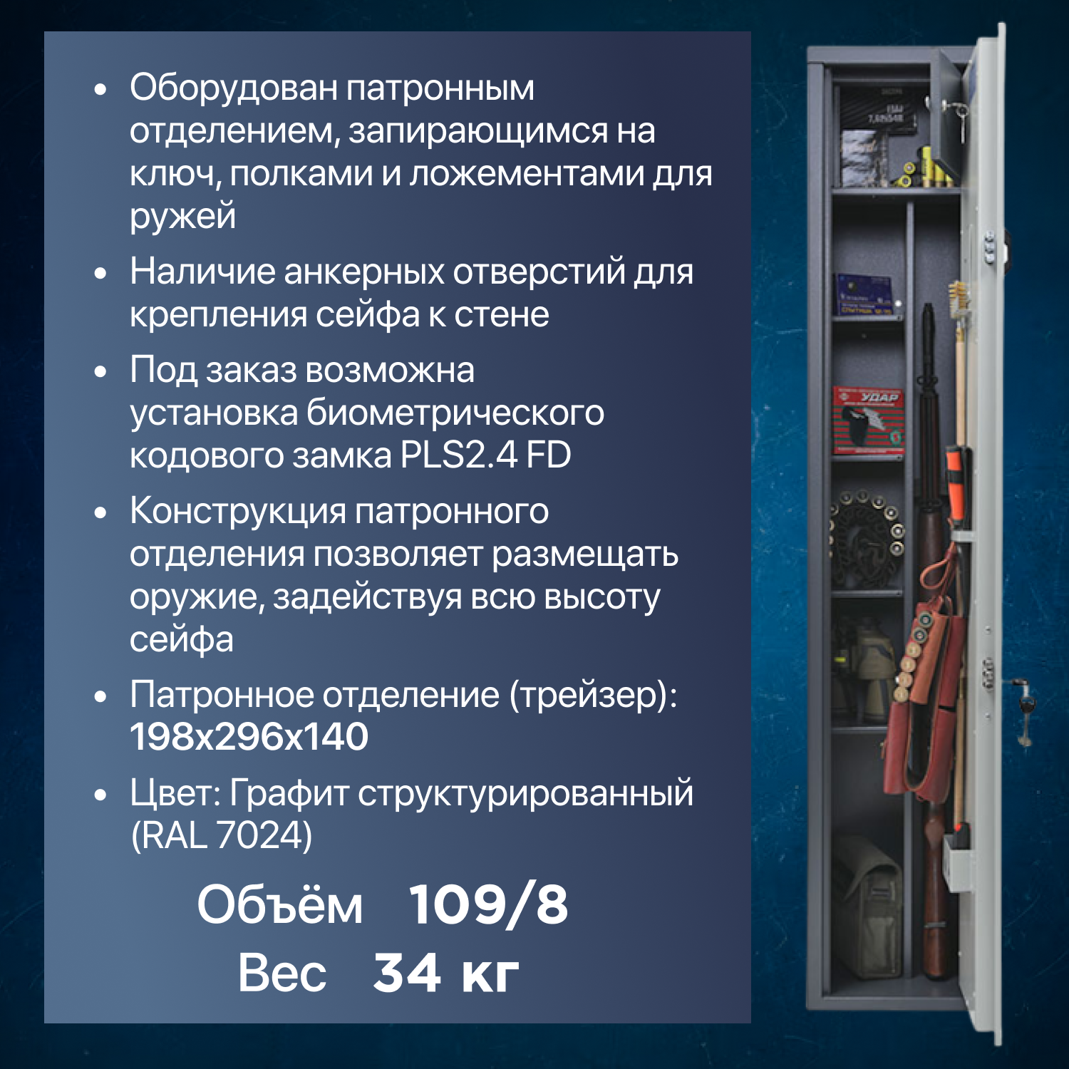 Сейф (шкаф) оружейный, под 2 ствола