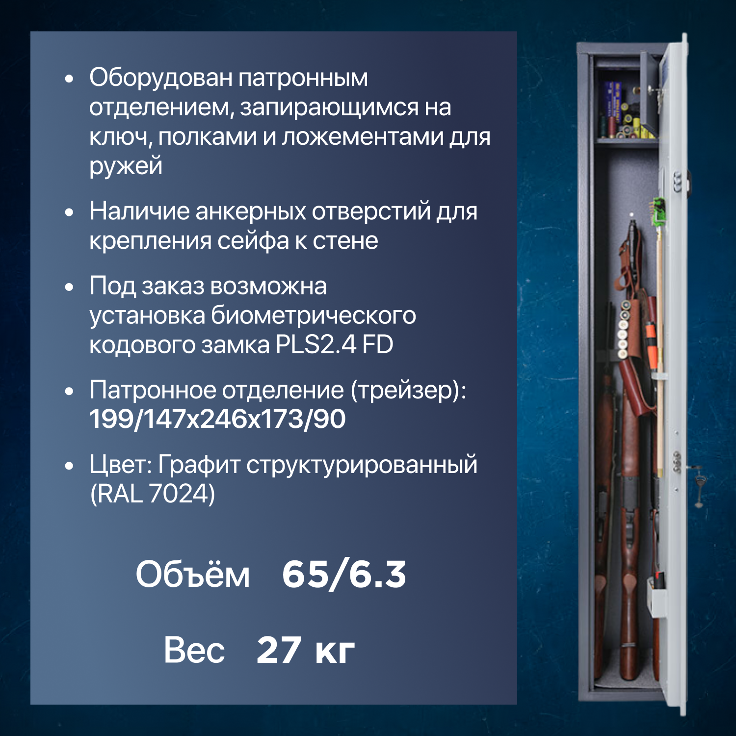 Сейф оружейный "Беркут 3" (1500x250x250мм) (Ключевой замок) (Высота ружья до 137,6см)