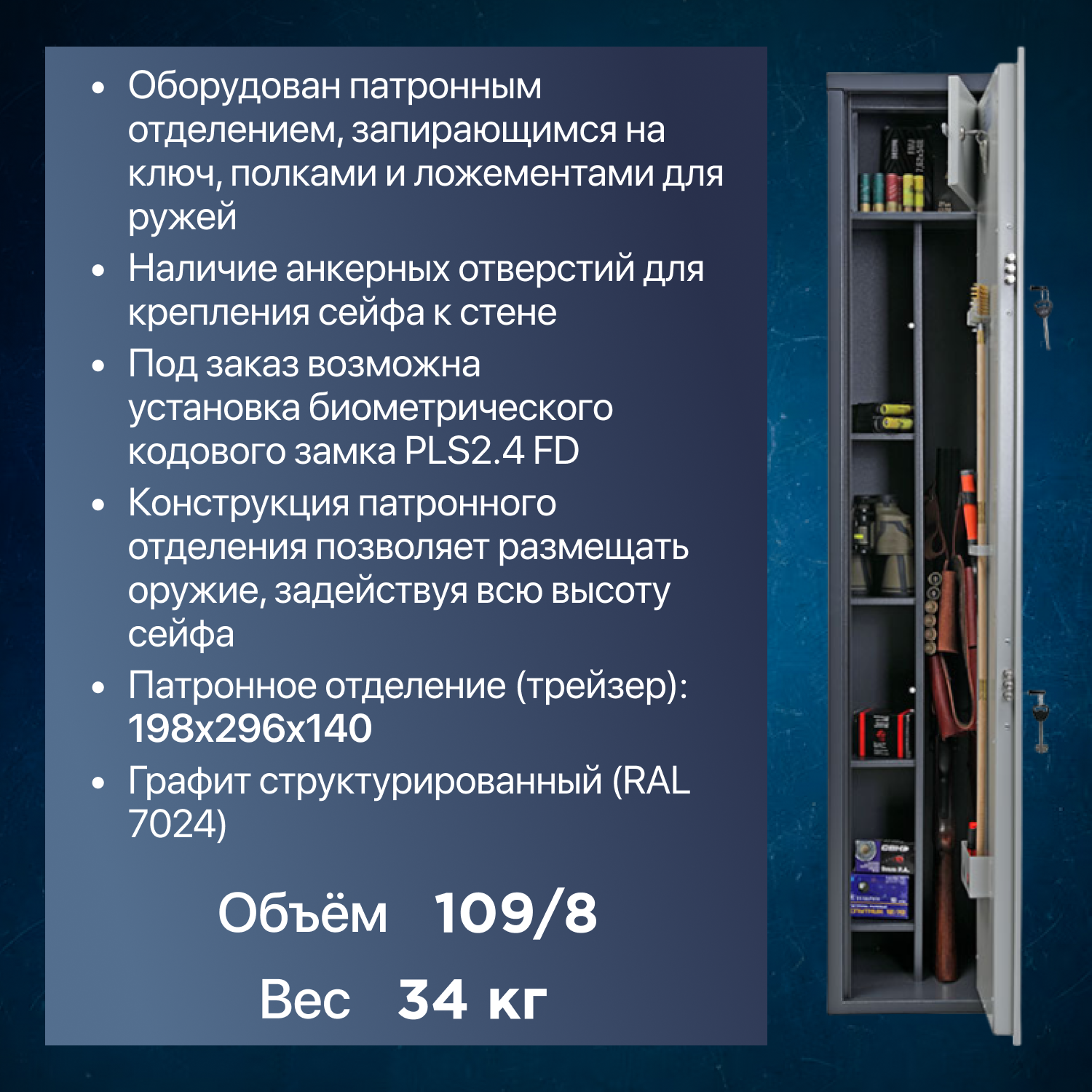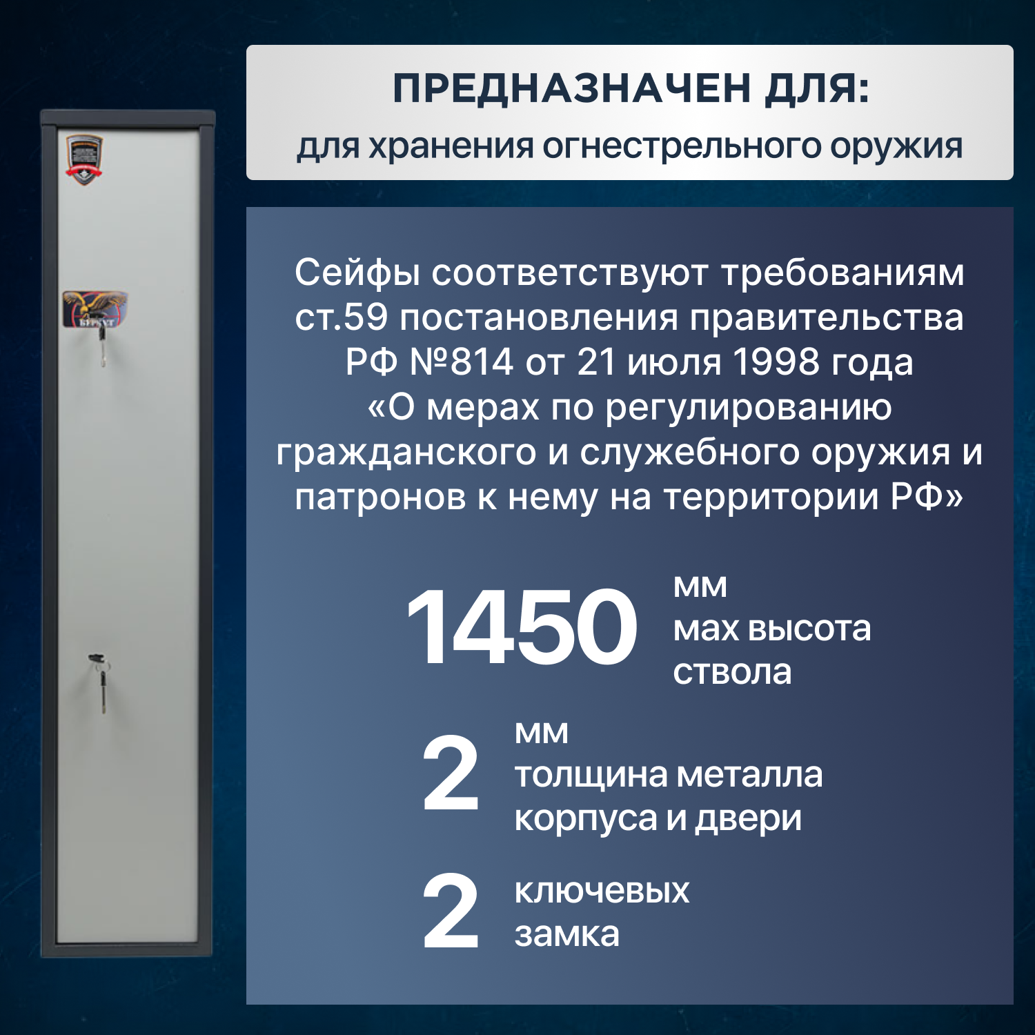 Сейф оружейный "Беркут 3" (1500x250x250мм) (Ключевой замок) (Высота ружья до 137,6см)