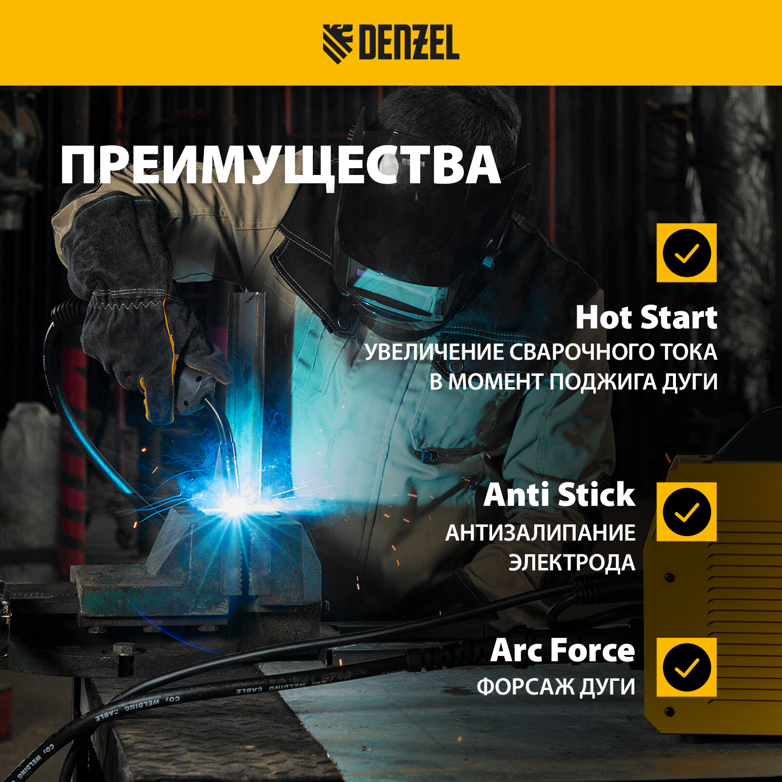 Аппарат инверторный дуговой сварки 230 А Denzel