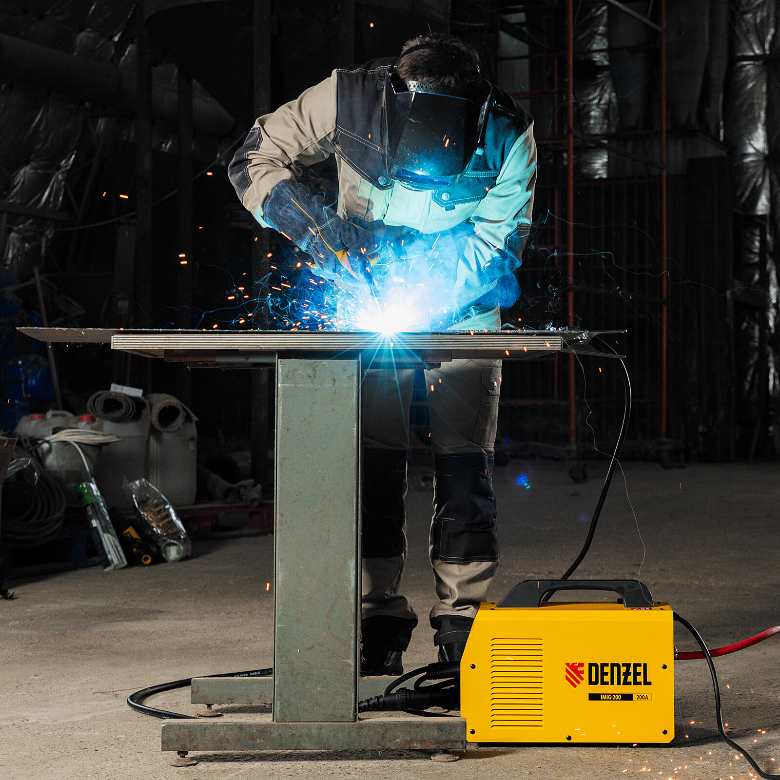 Купить Аппарат инвертор. полуавтомат. cварки Denzel IMIG-200, 200 А, ПВ 60%, катушка 5 кг 94361
