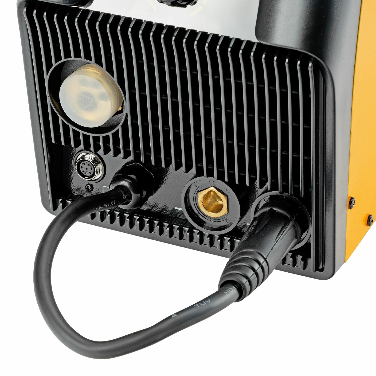 | Плюсы: | Варит неплохо, небольшие размеры, увеличенные разъёмы под сварочные провода,отключение вентилятора во время простоя. |