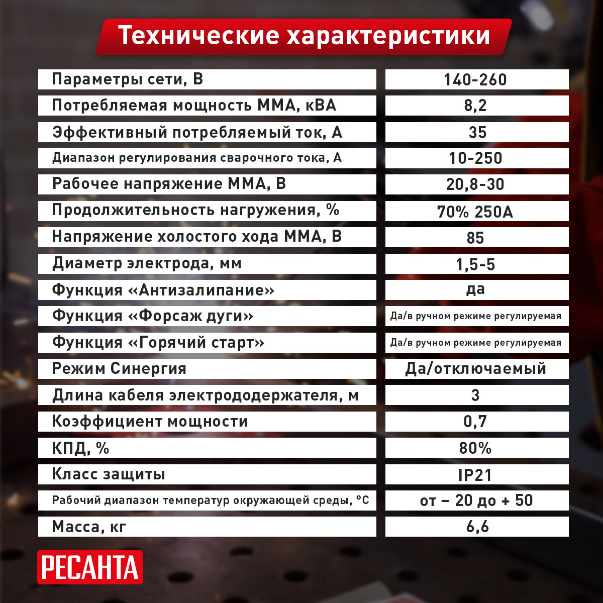 | Плюсы: | Мощность сварочного тока тут предусмотрена до 250 А |