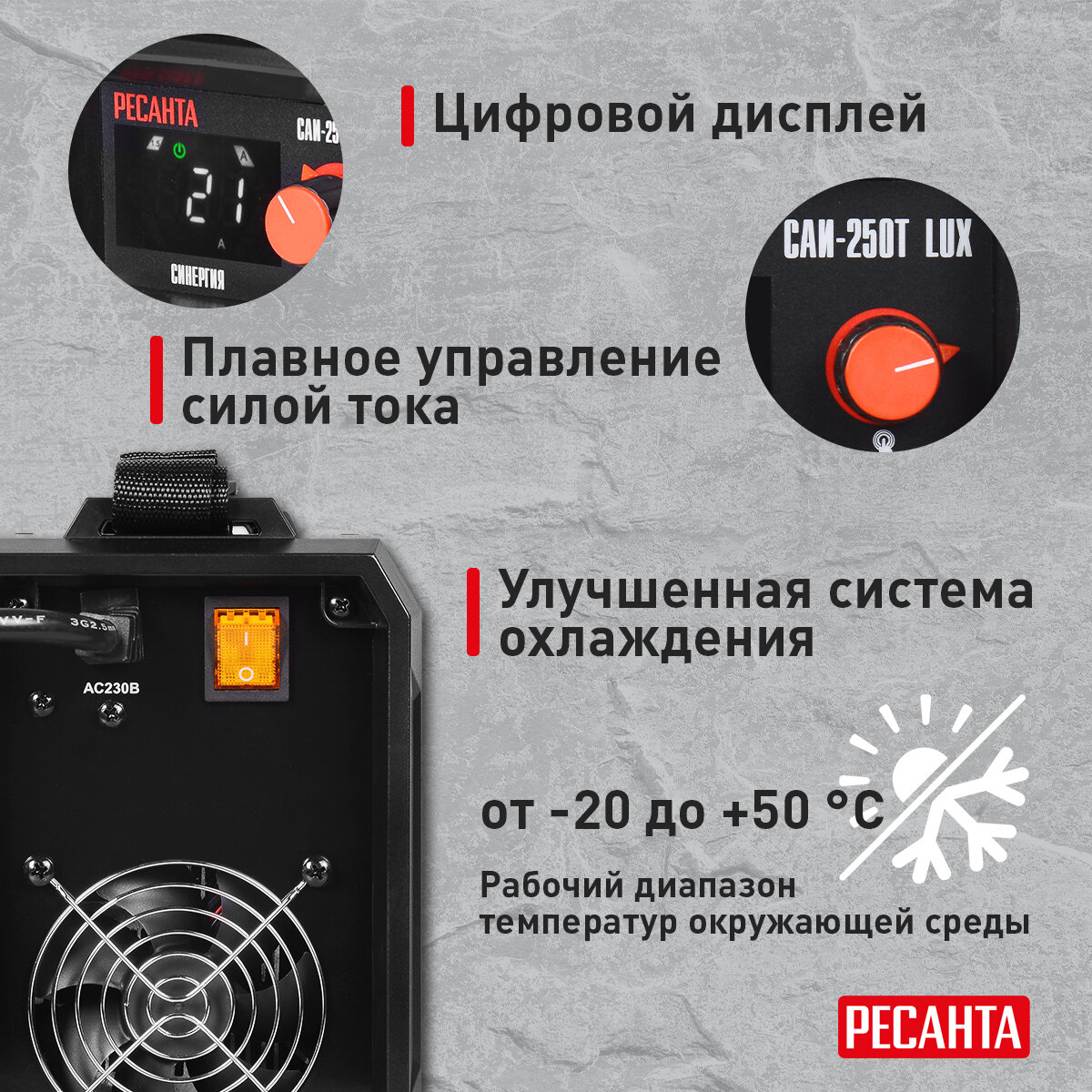Сварочный аппарат инверторный, Ресанта, САИ-250Т Lux, 250 А, электрод