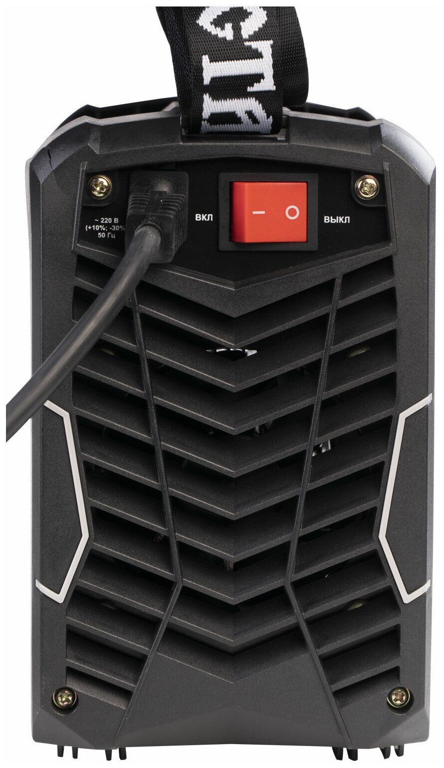 | Комплектация | рабочий кабель с электрододержателем, кабель заземления с клеммой, металлическая щетка, наплечный ремень |
