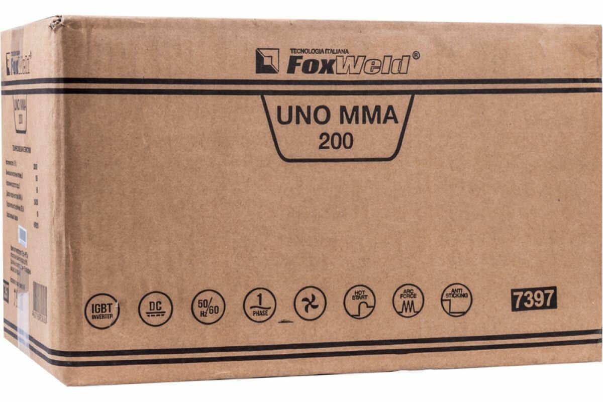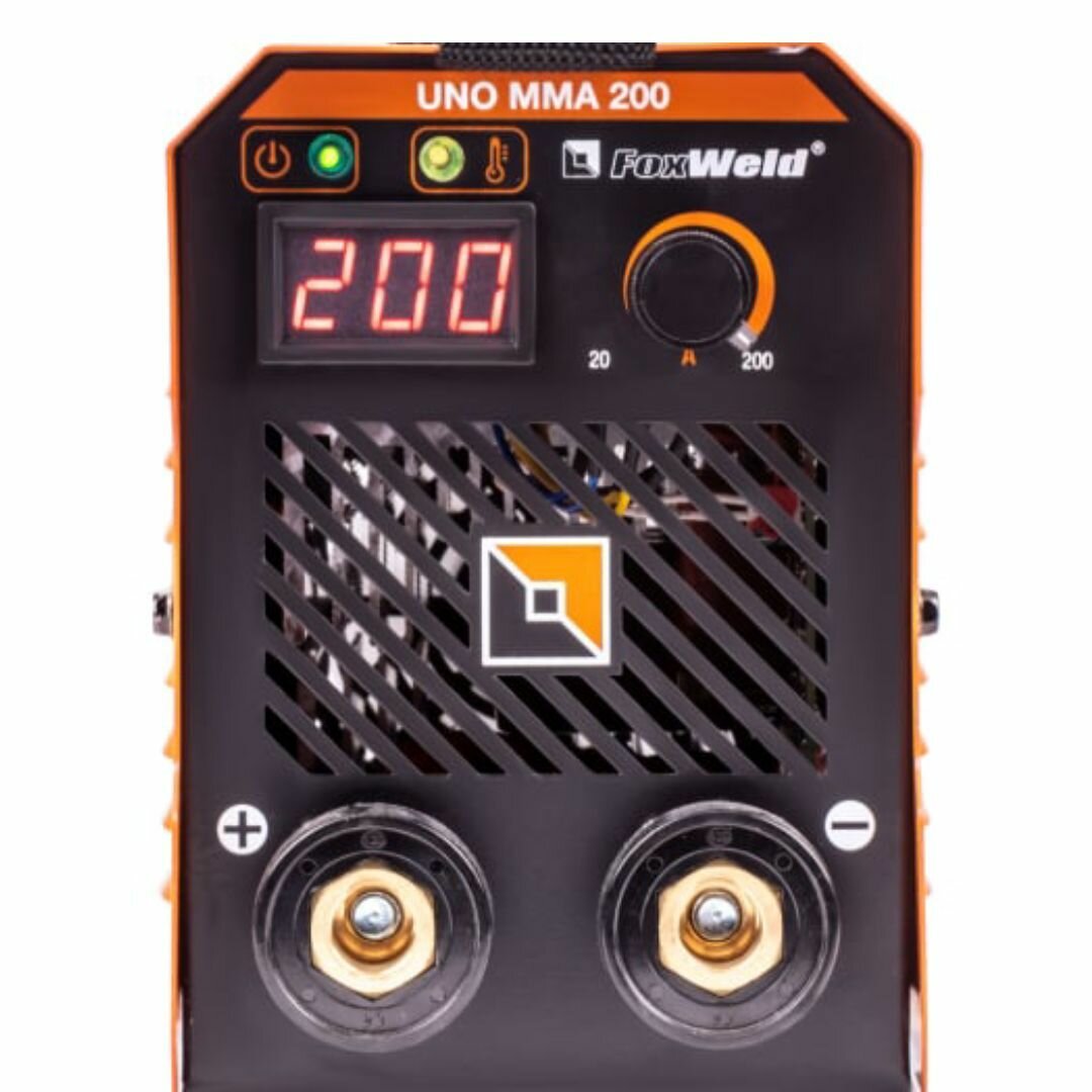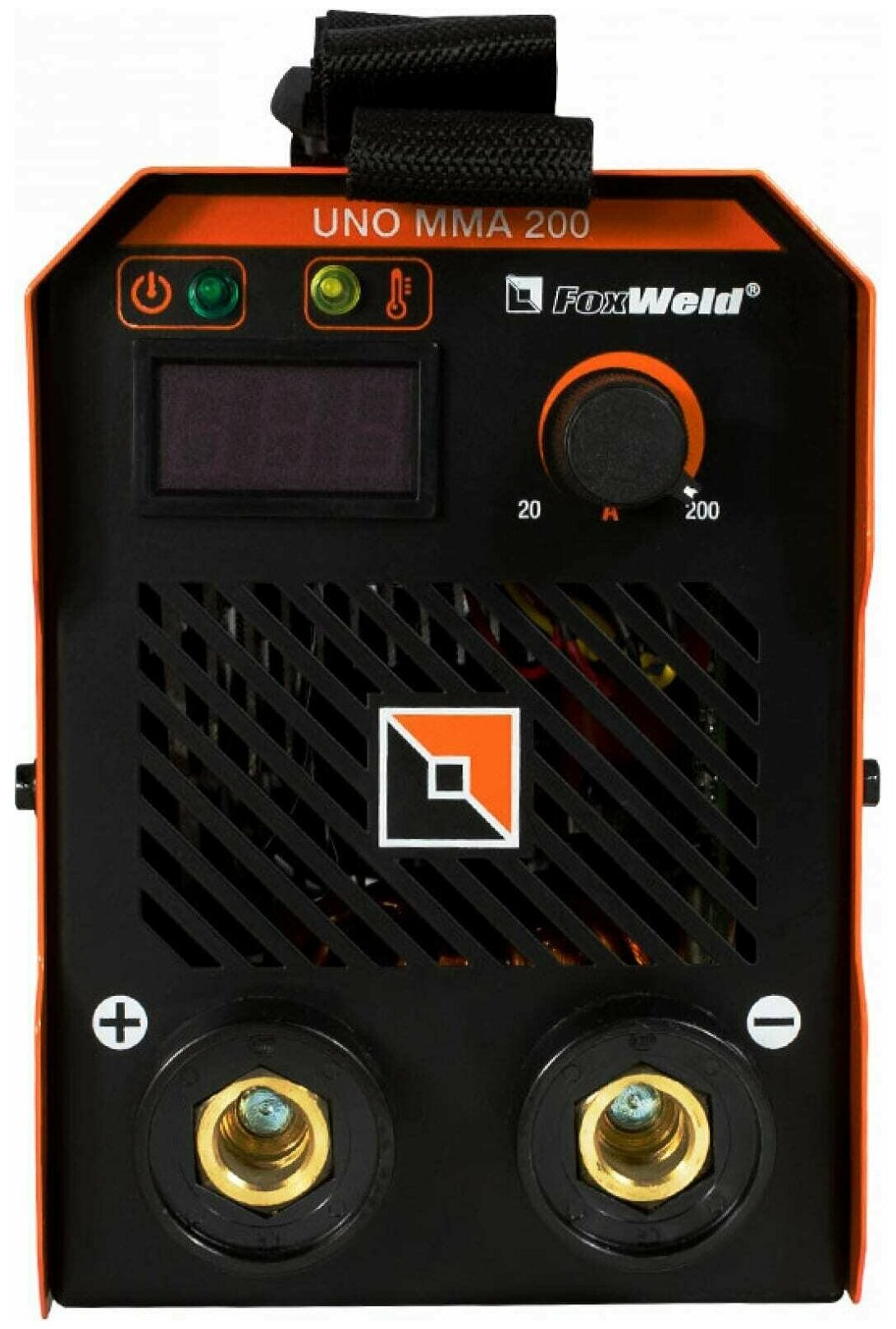 Foxweld Сварочный аппарат UNO MMA 200 варит электродом, легкий поджиг, ручная дуговая сварка, ПВ 100%, Горячий старт, Форсаж дуги, Антизалипание электрода