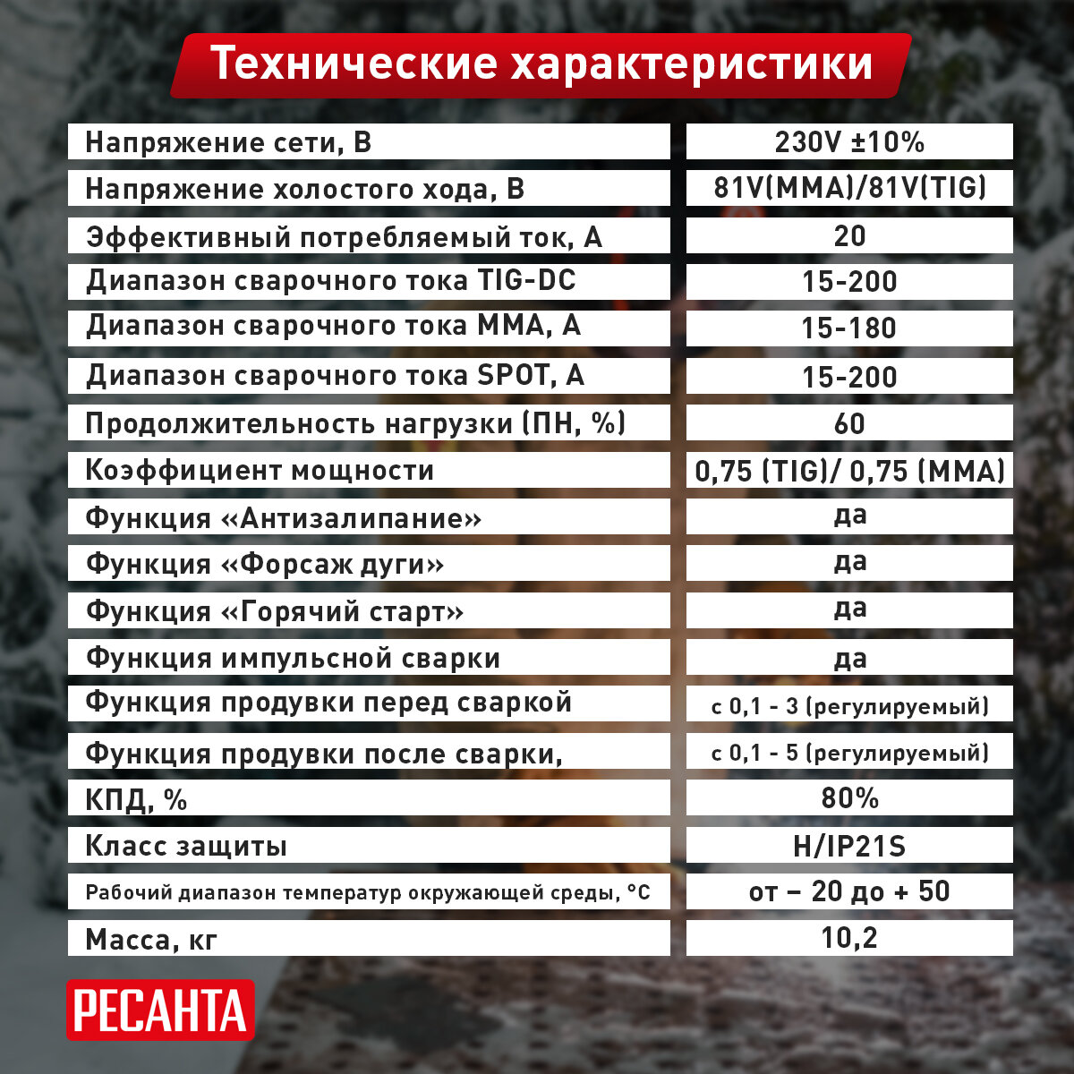Купить Сварочный аппарат инверторный Ресанта САИ-200АД, MMA, TIG, 200А