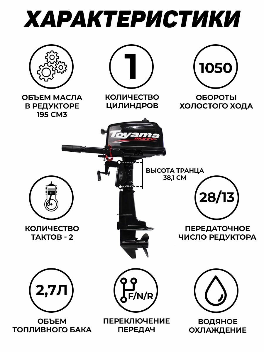 Лодочный мотор Toyama T 2.6 CBMS | 2.6 л. с | 2т