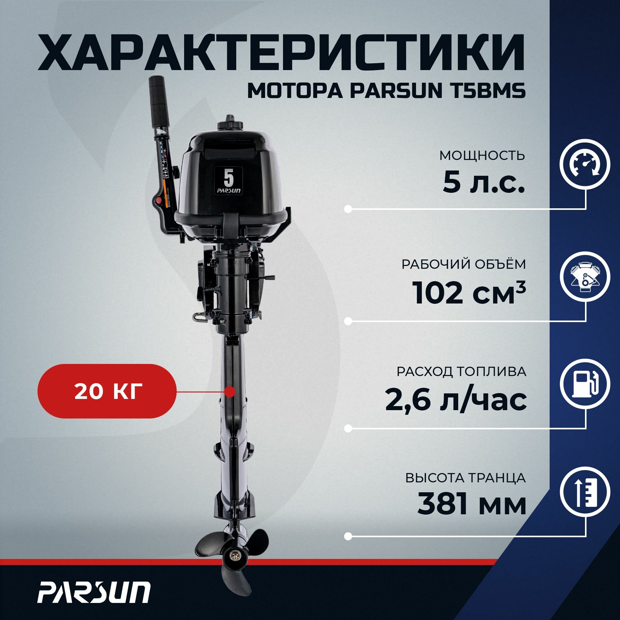 Лодочный мотор Parsun T5BMS, 5 л. с. интересное: