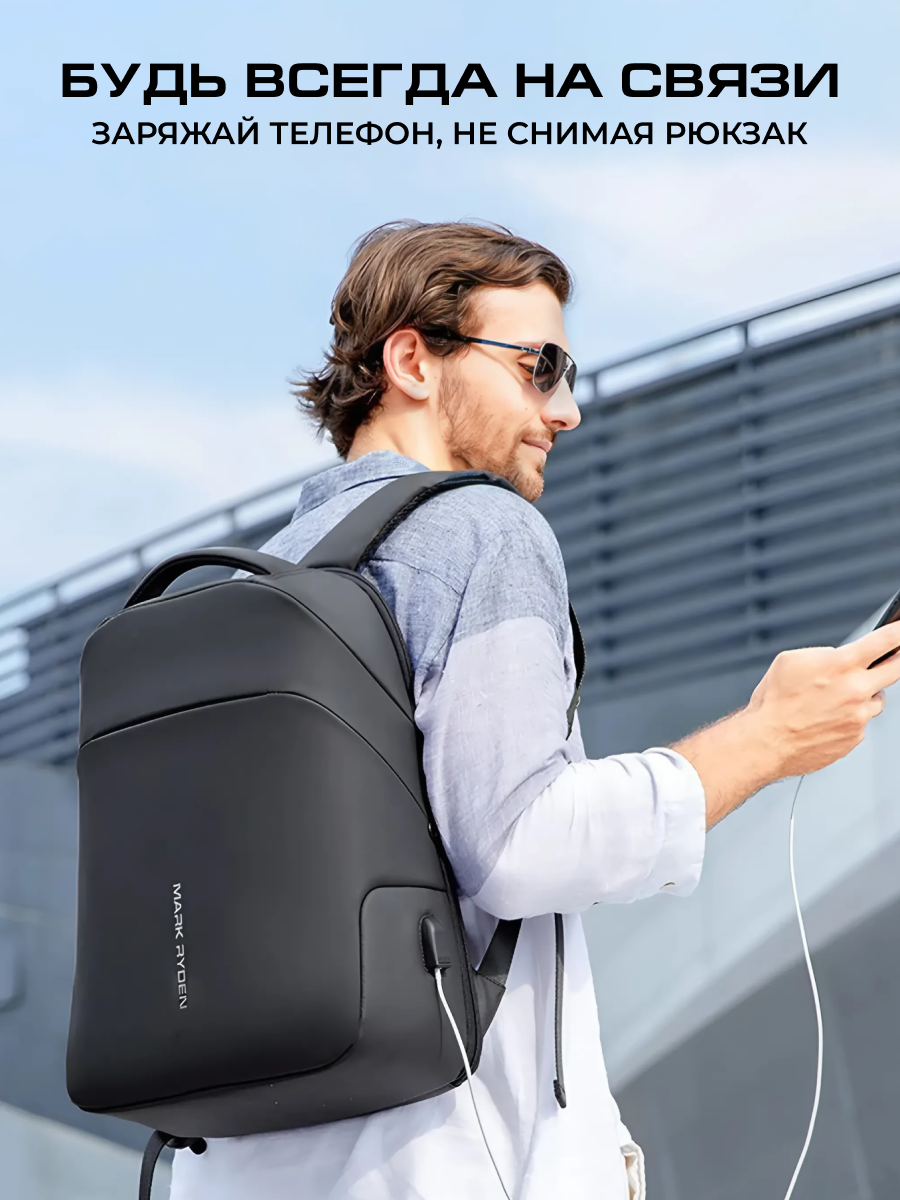 Купить Рюкзак мужской городской черный Mark Ryden MR9068YY для ноутбука 15.6 с кодовым замком и USB, дождевик в комплекте, объем 17 л. Женский, дорожный ручная кладь, подарок мужчине, подарок мужу