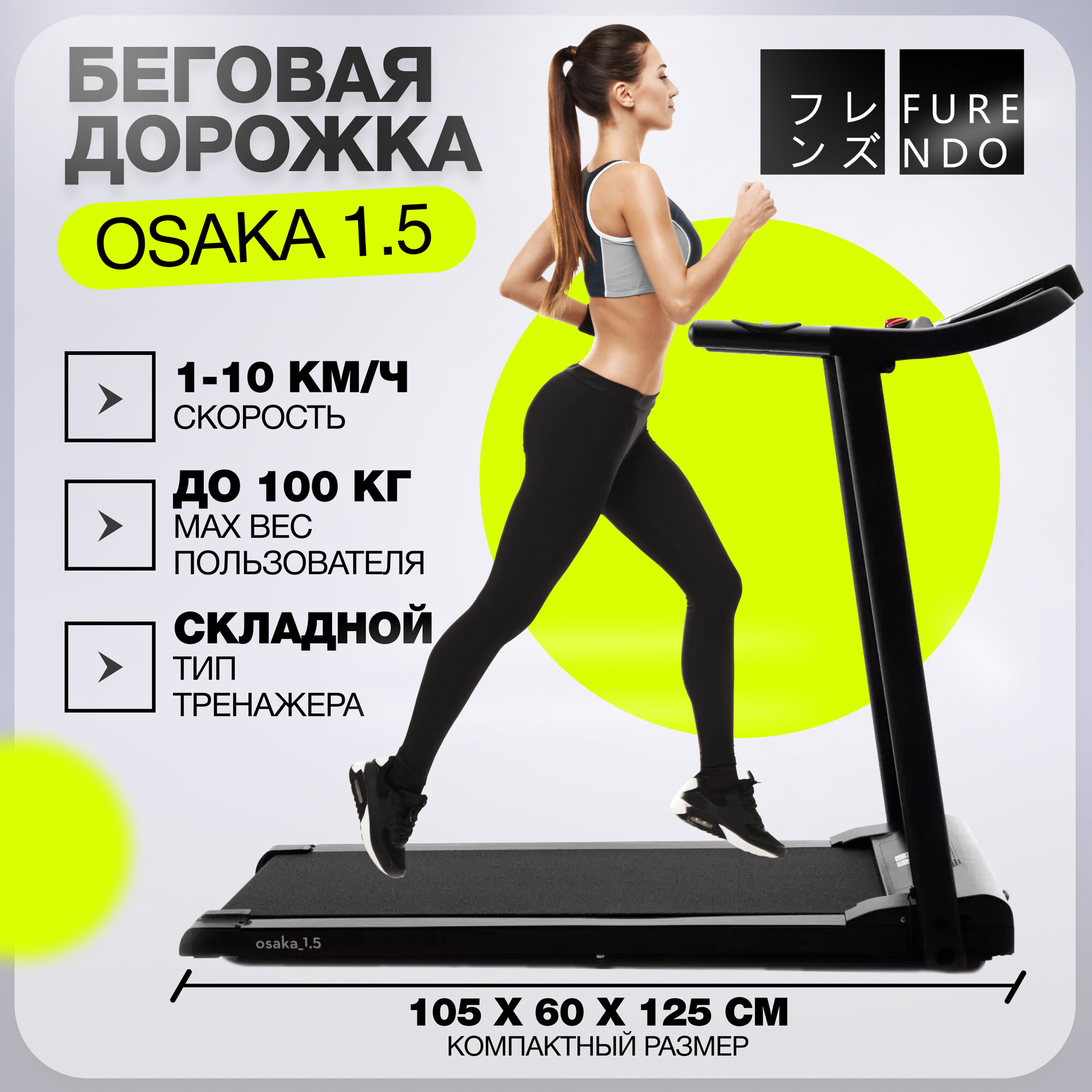 Купить Беговая складная дорожка для дома Furendo Osaka_1.5 P7, до 10 км/ч, до 100 кг, полотно 103х38