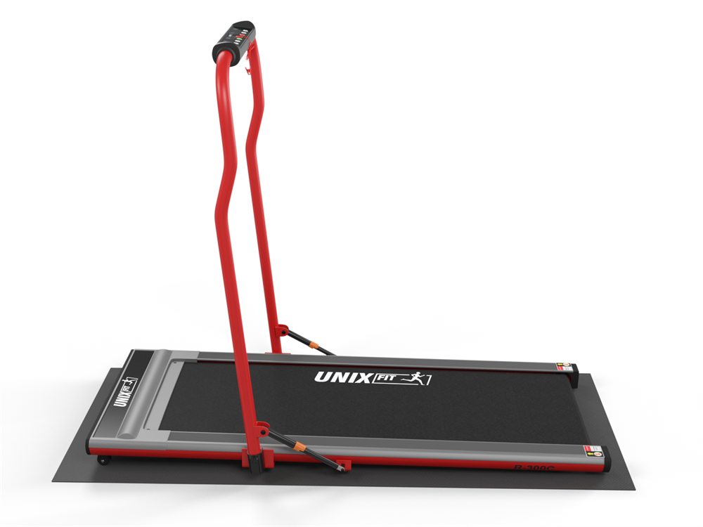 Беговая дорожка Unix Fit R-300C Red с поручнем, беговое полотно 120 x 46 см, 6 плоских эластомеров UNIXFIT
