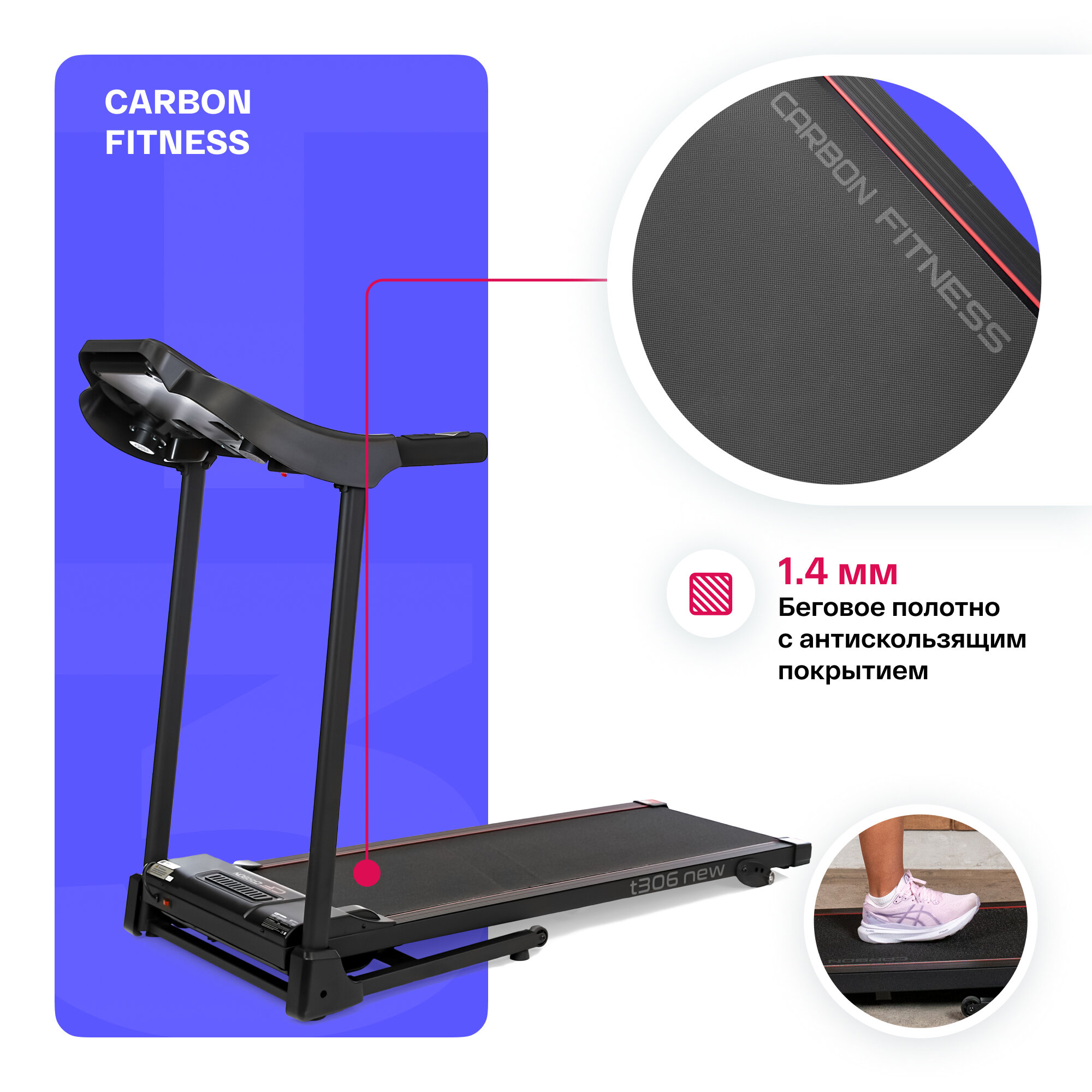 Беговая дорожка электрическая складная для дома CARBON FITNESS T306 NEW интересное: