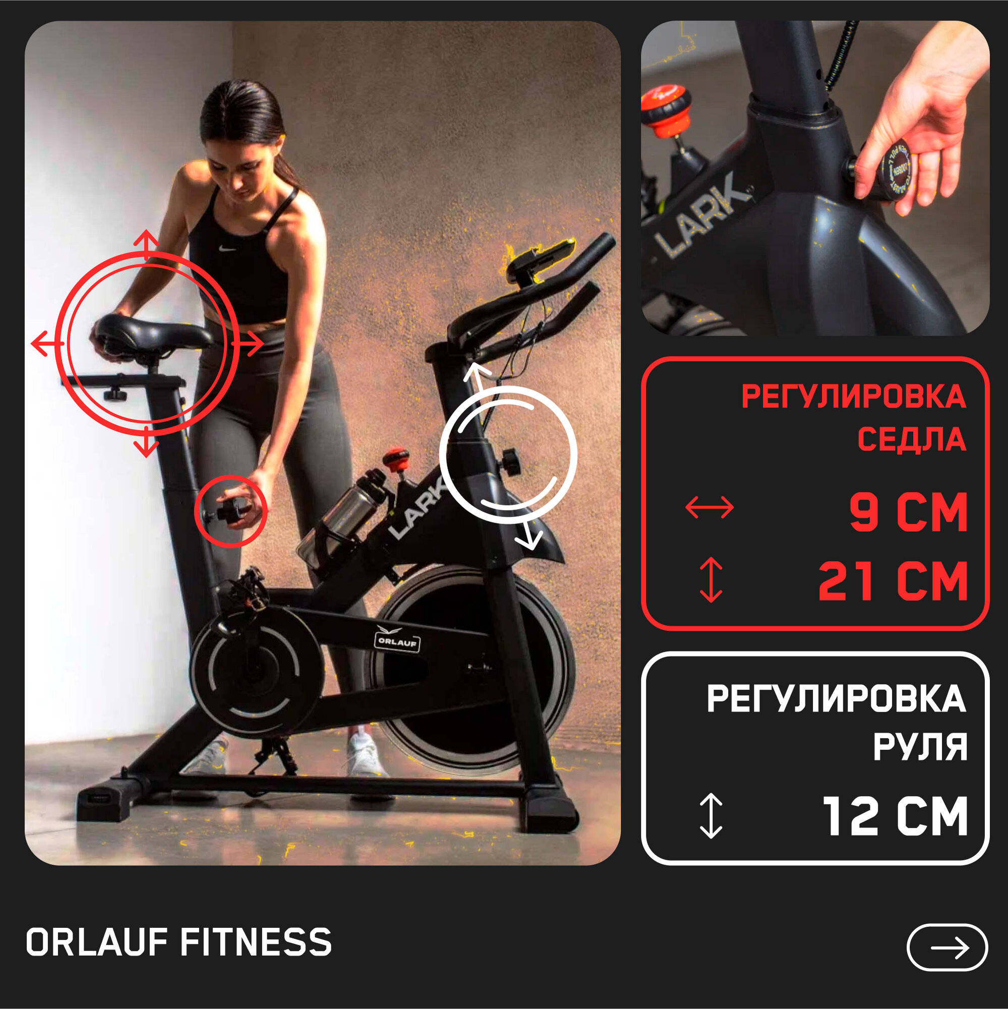 Спин-байк для дома Orlauf Lark / Велотренажер с магнитной нагрузкой до 130 кг интересное: