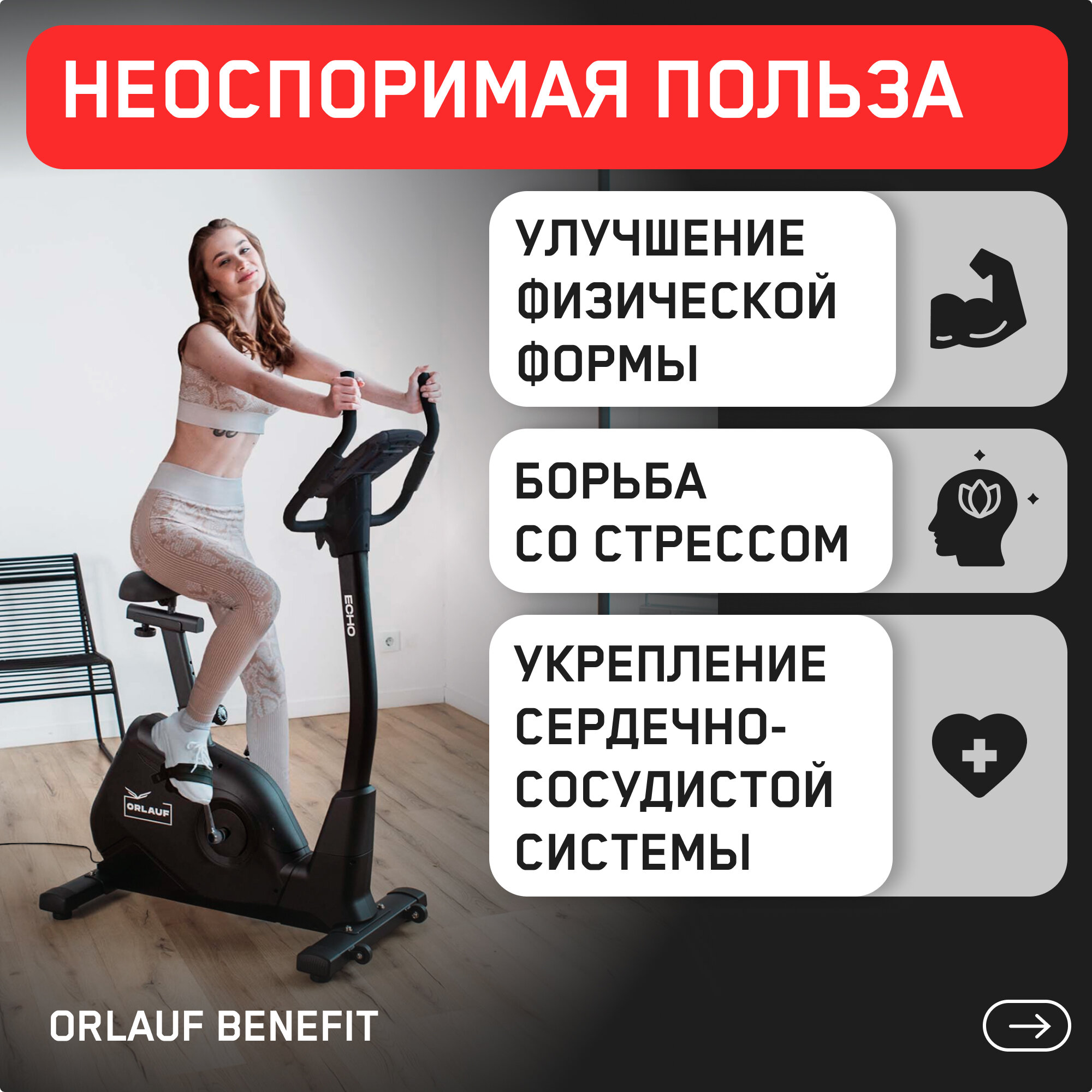 Велотренажер Orlauf Echo Black для дома вертикальный до 150 кг интересное: