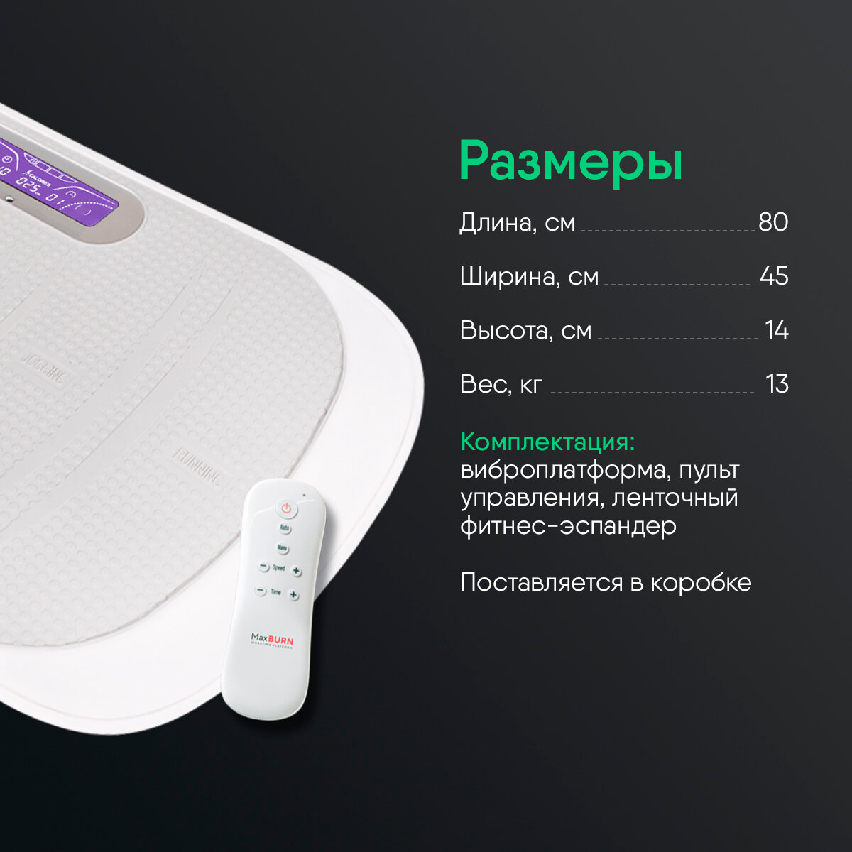 | Подробная комплектация | Виброплатформа, пульт ДУ, инструкция пользователя |