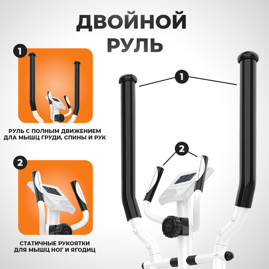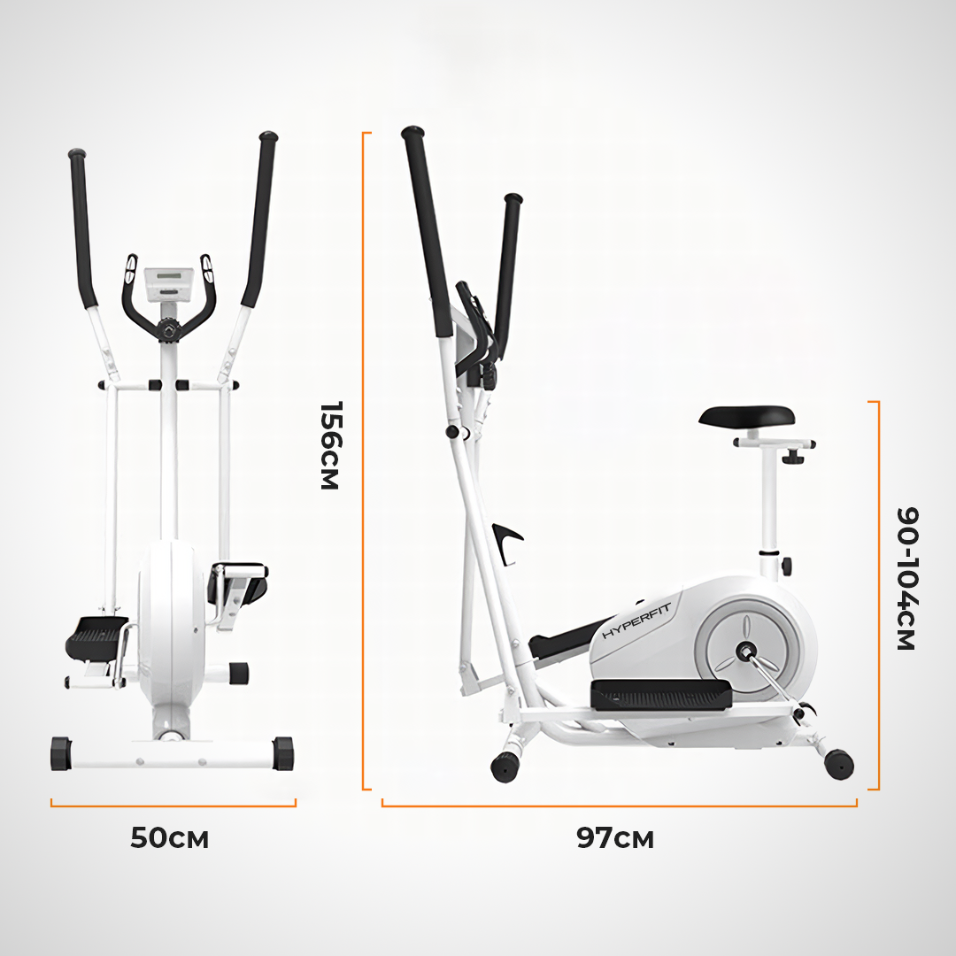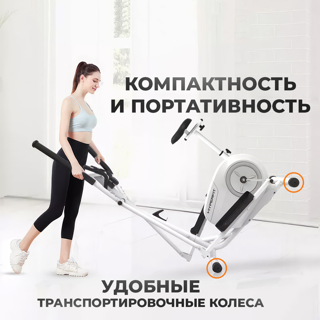 Эллиптический тренажер HyperFit Reisender U13W/3 в 1, белый/Велотренажер/Степпет/Для дома/Для тренировок/Маховик 7 кг/магнитный/Микротоковый компьютер в комплекте