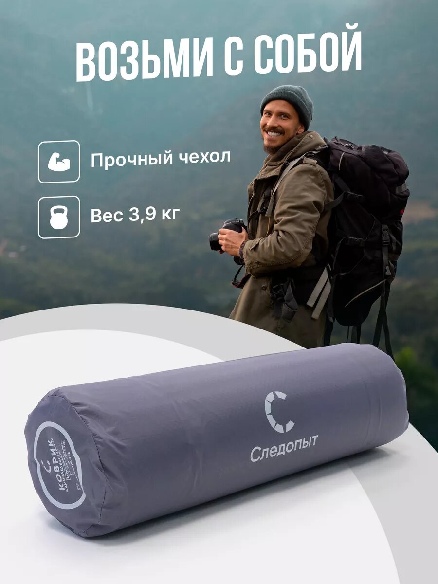 Коврик самонадувающийся туристический 5 см толщина "следопыт" 188x66x5 cм, стандарт/ Походный матрас кемпинговый/ Коврик в палатку самонадувной
