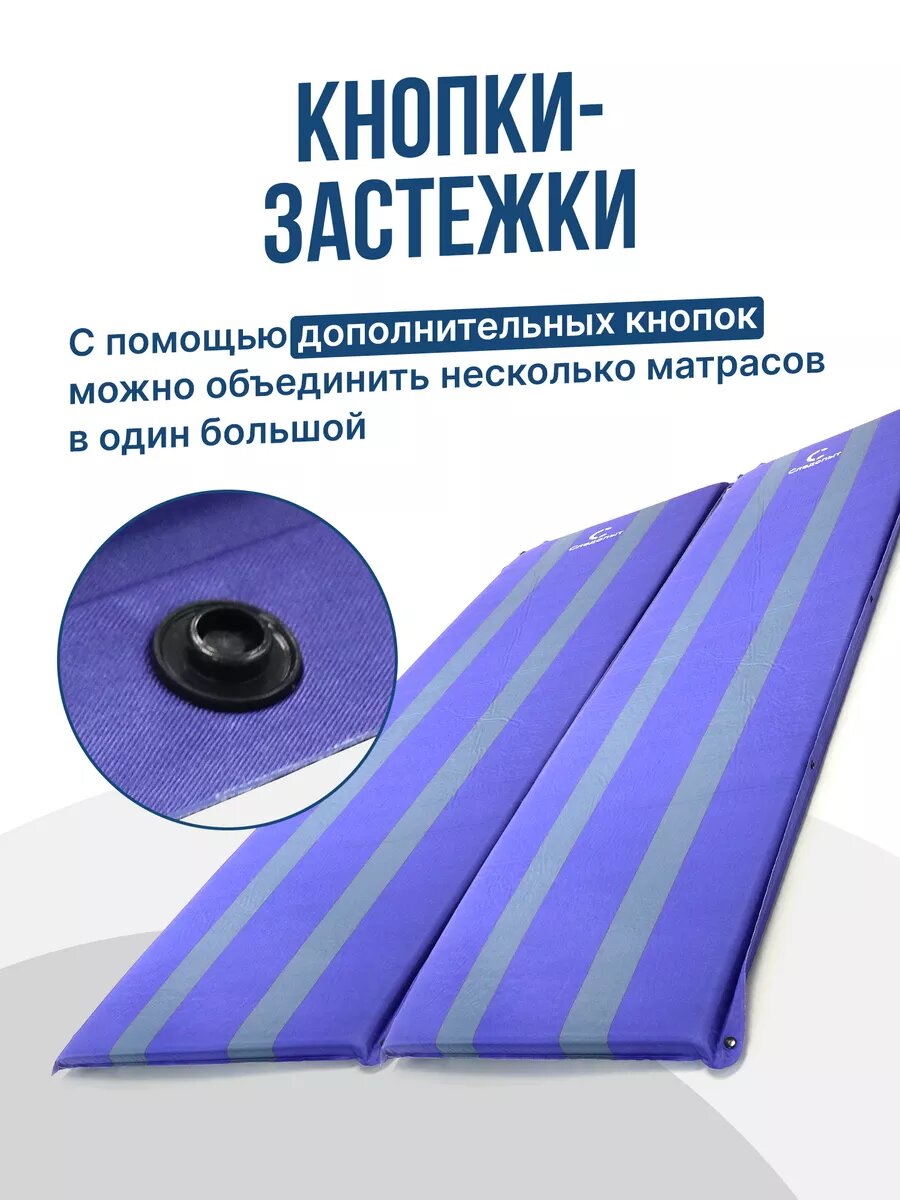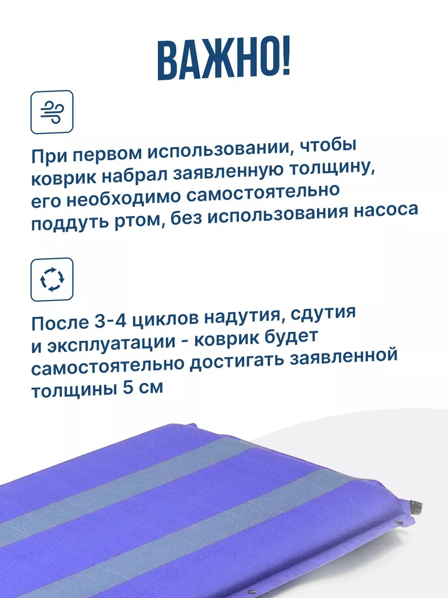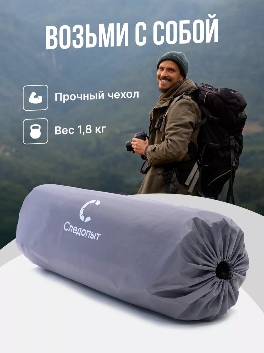 Коврик самонадувающийся туристический 5 см толщина "следопыт" 188x66x5 cм, стандарт/ Походный матрас кемпинговый/ Коврик в палатку самонадувной