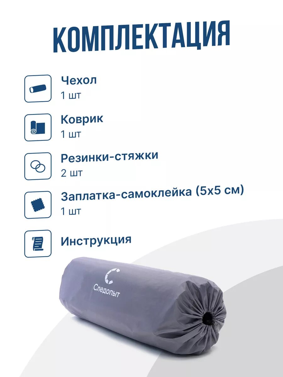 Коврик самонадувающийся "следопыт" 191x62x5 cм, стандарт, цв. синий/серый
