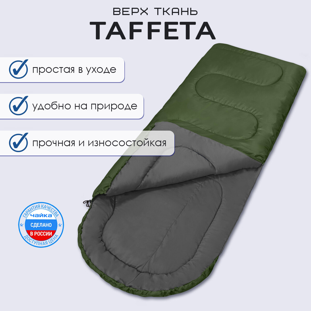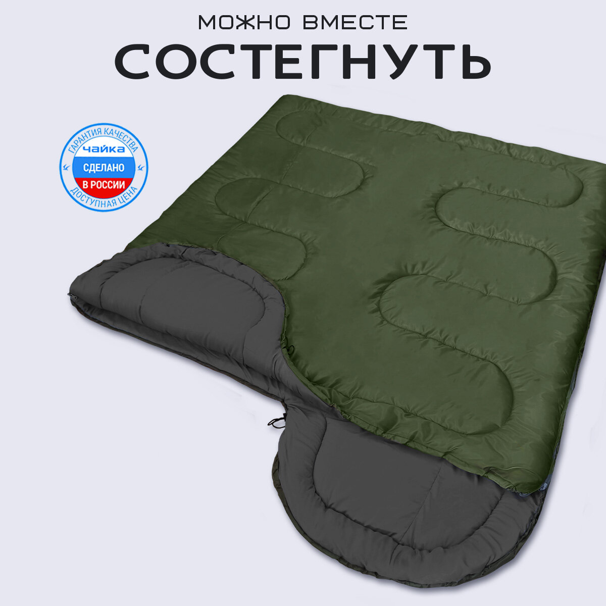 Спальный мешок Чайка СП-2, туристический, синтетический наполнитель, хаки