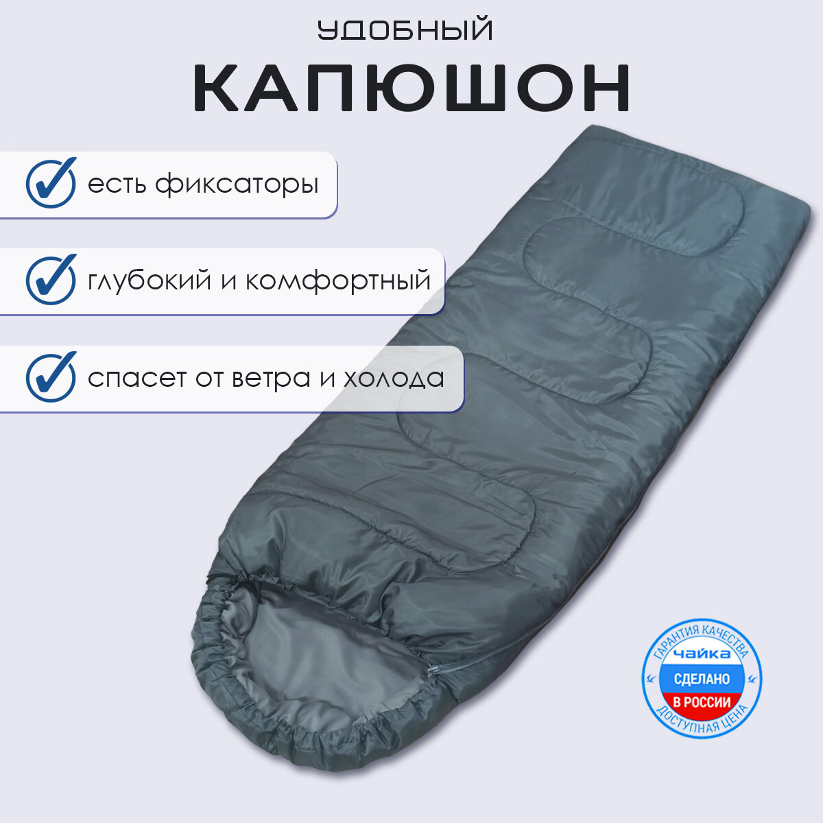 СохранитьСпальный мешок Чайка СП3, туристический с капюшоном, 3 слоя Термофайбера, серый, 235х75см интересное: