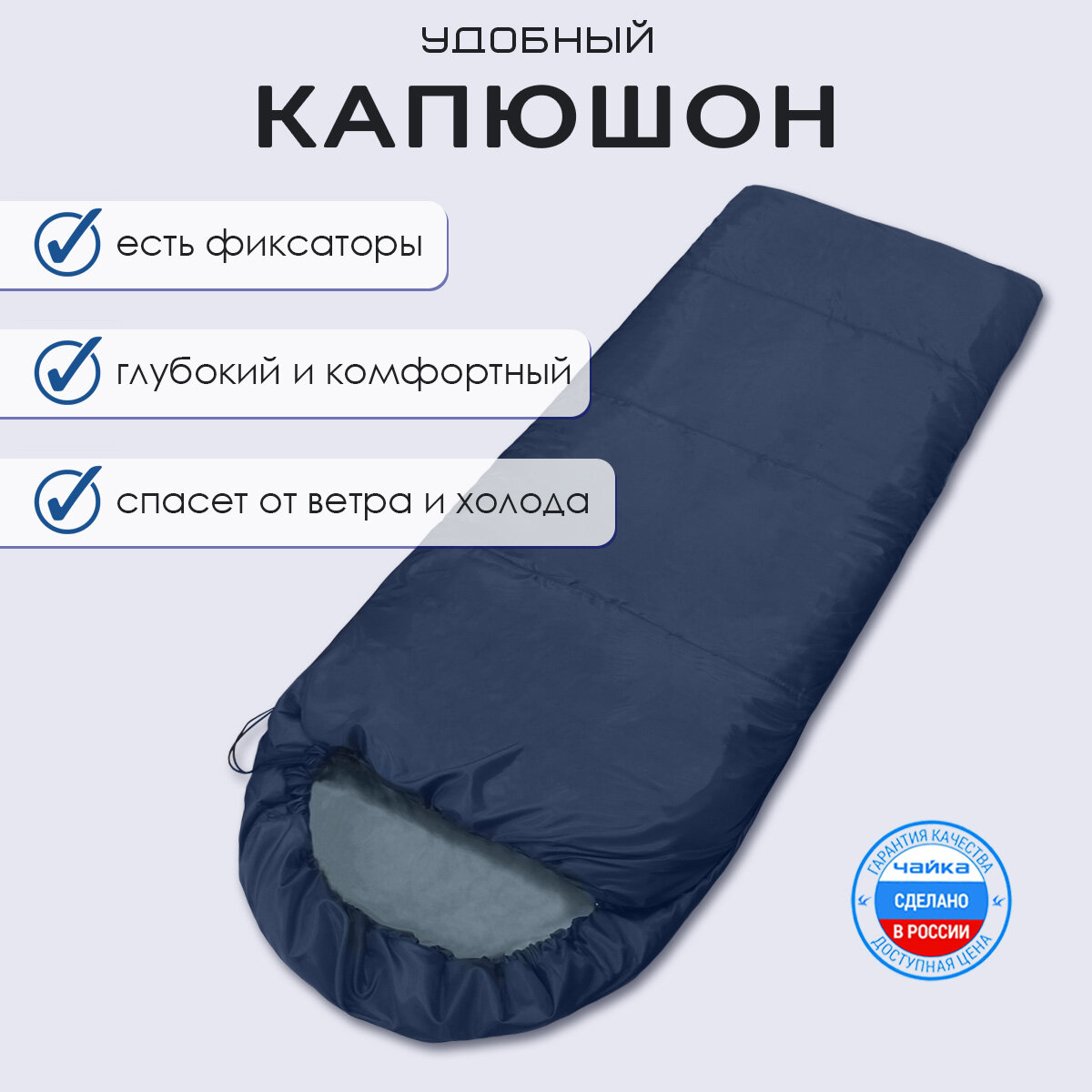 Купить Спальный мешок Чайка СП2 XXL, синий, 235х90 см, наполнитель термофайбер, с капюшоном