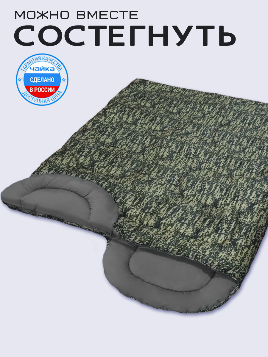 Спальный мешок Чайка "СП2 XXL", туристический, армейский, хаки, 235х90 см