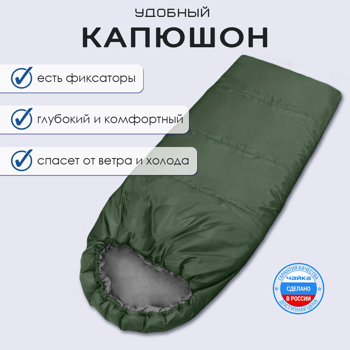 Спальный мешок Чайка "СП3", туристический, с капюшоном, чехол в комплекте, цвет хаки, 235х75 см