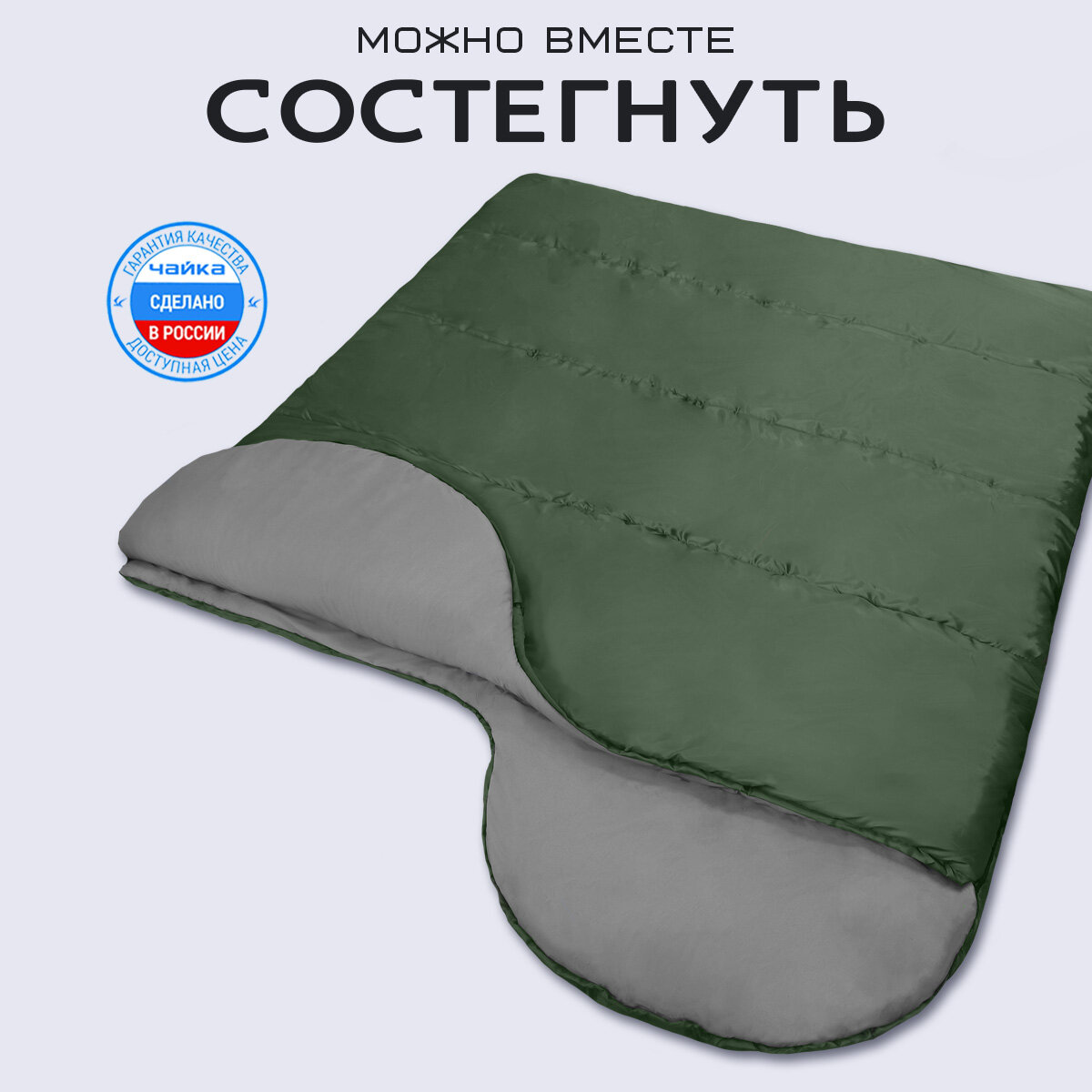 Спальный мешок Чайка "СП2 XXL", туристический, армейский, хаки, 235х90 см