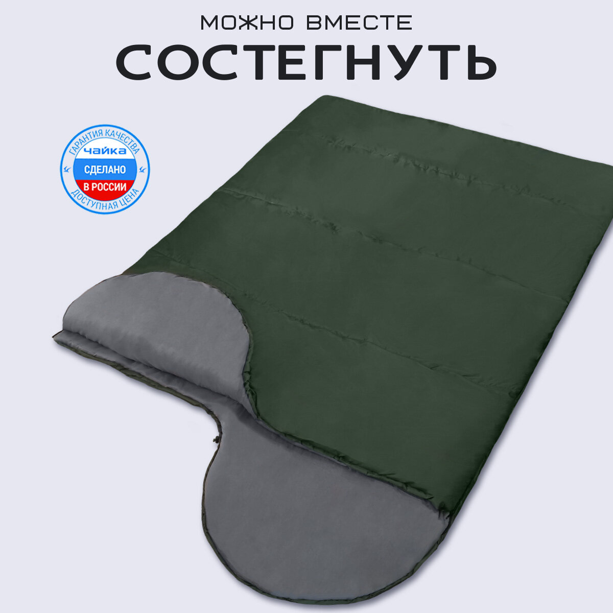 Спальный мешок Чайка "СП2 XXL", туристический, армейский, хаки, 235х90 см