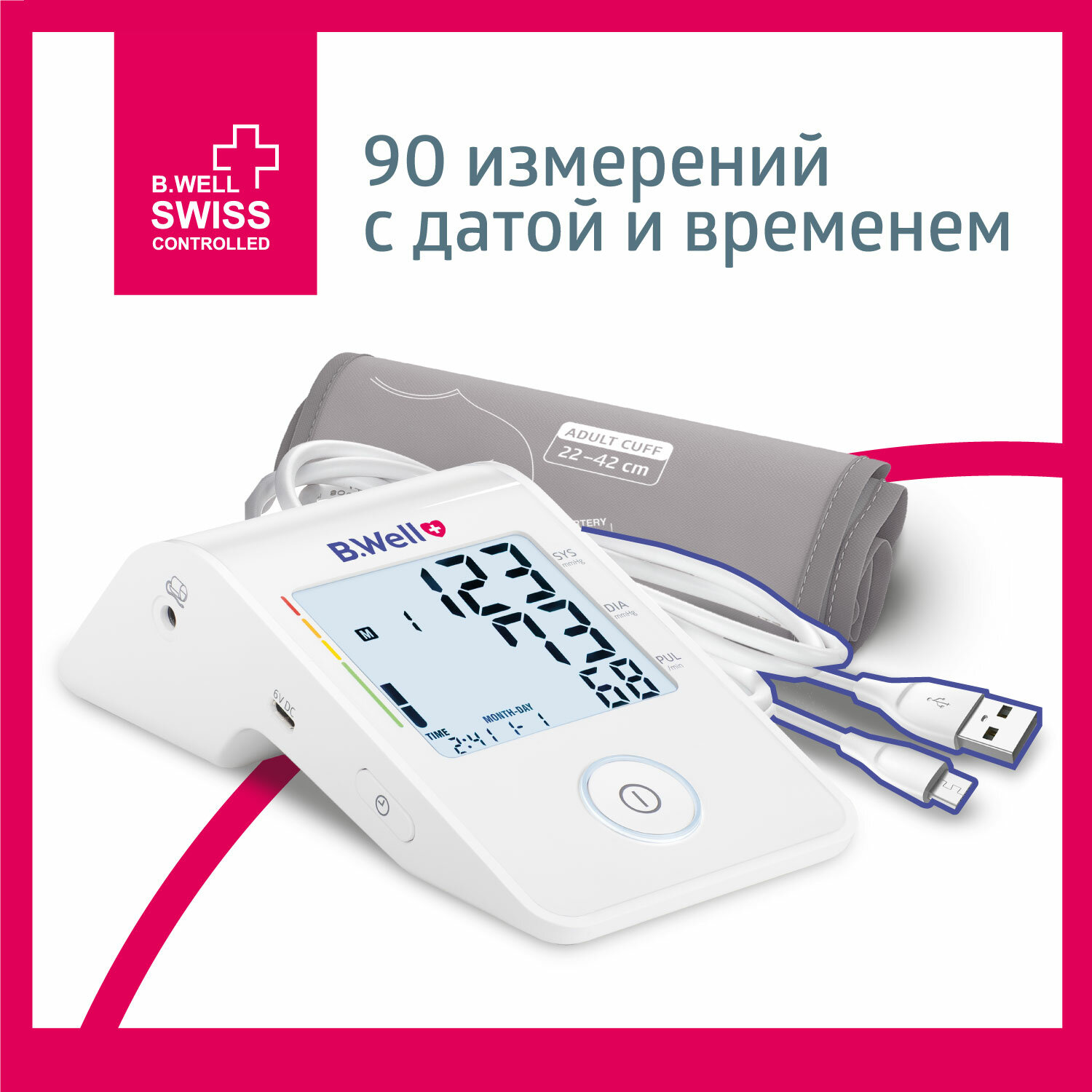 Тонометр B.Well MED-53 (M-L) манжета (22-42 см) адаптер USB индикатор аритмии подсветка дисплея