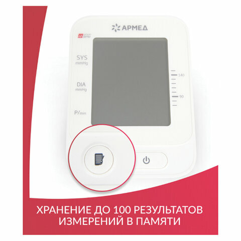 Тонометр (МЕД РУ без НДС) АРМЕД YE660E, диапазон давления 0-280 мм рт. ст., диапазон пульса 40-200 уд/мин, автоматический, без поверки, 1977801