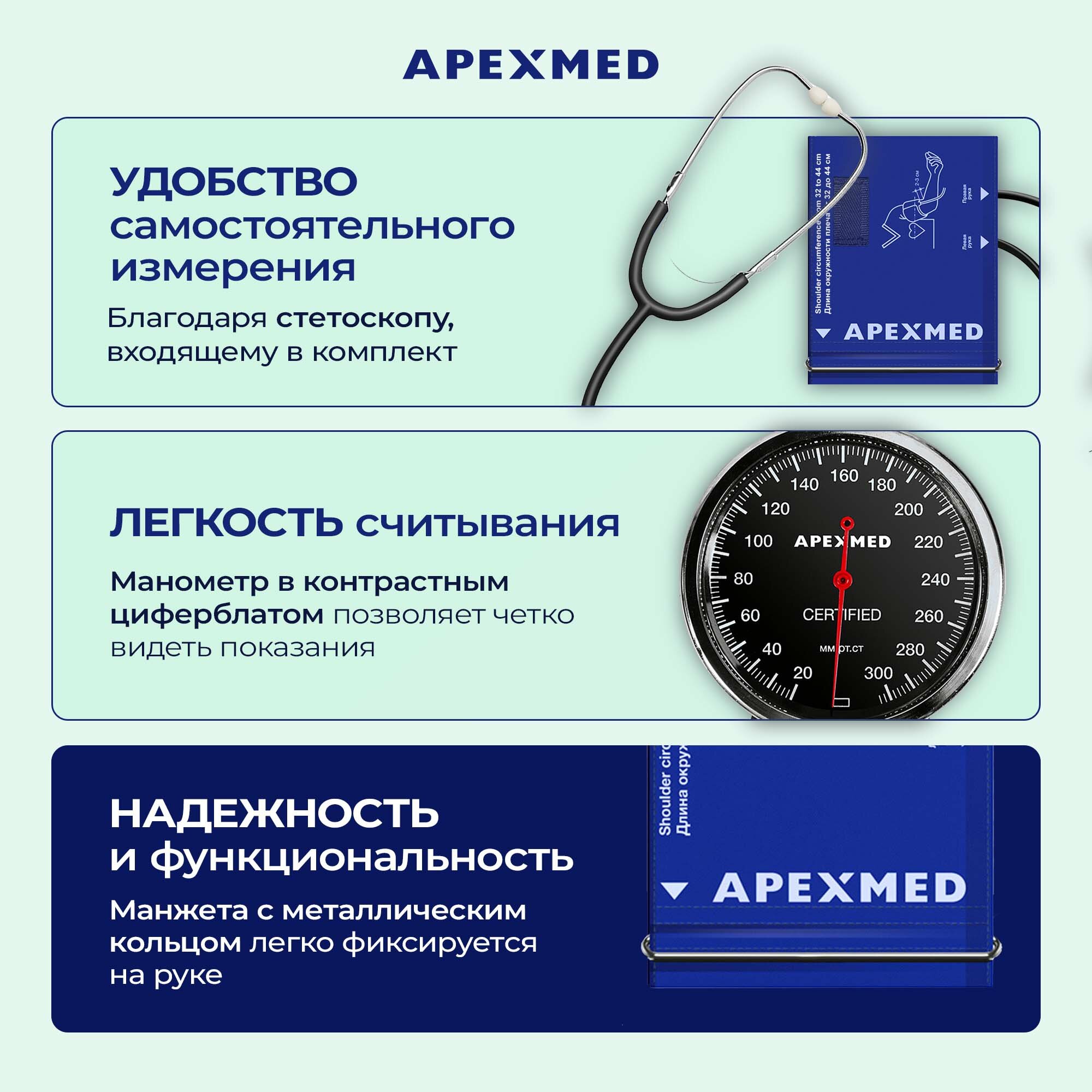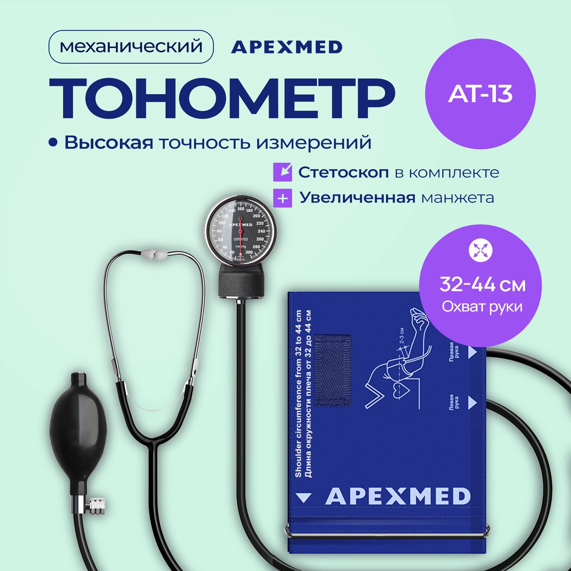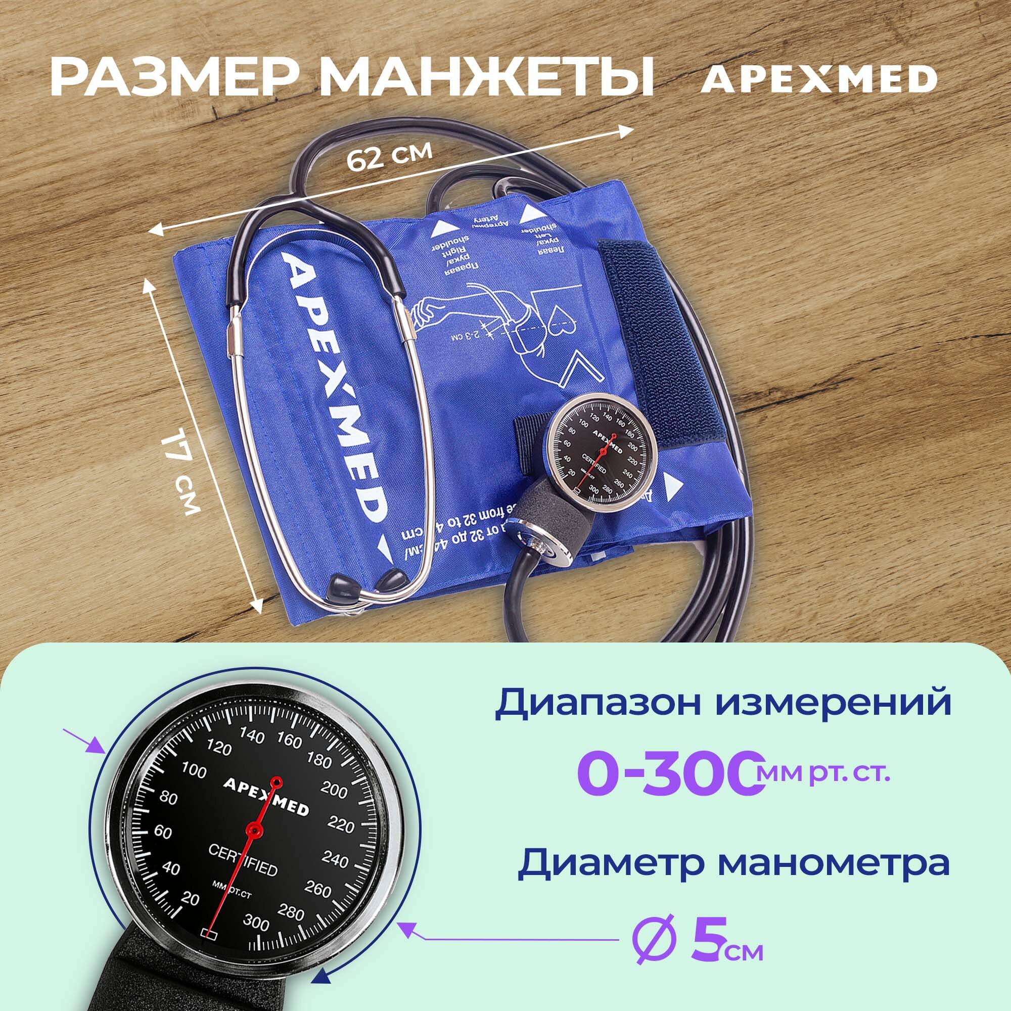 Тонометр механический Apexmed АТ-13 с большой манжетой, 32-44 см, измеритель давления интересное: