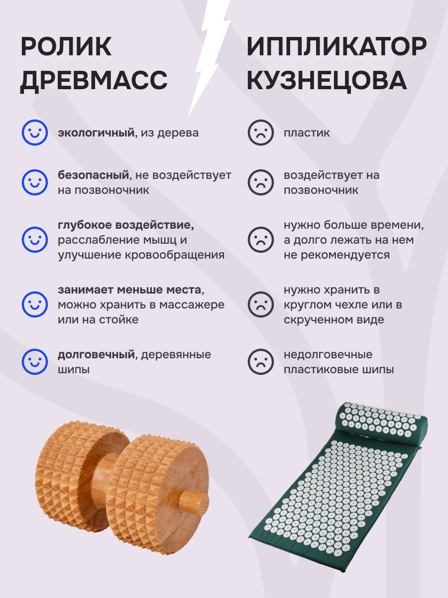 Массажный ролик Drevmass, с шипами, для спины, ног, стоп, деревянный. интересное: