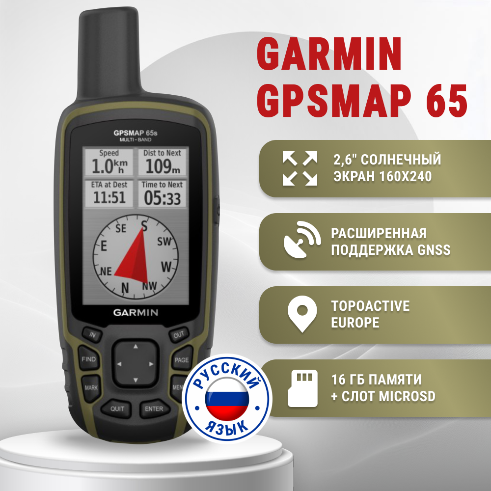 Навигатор Garmin GPSMAP 65 Multi-Band GNSS + топокарта Россия и Европа (010-02451-01)